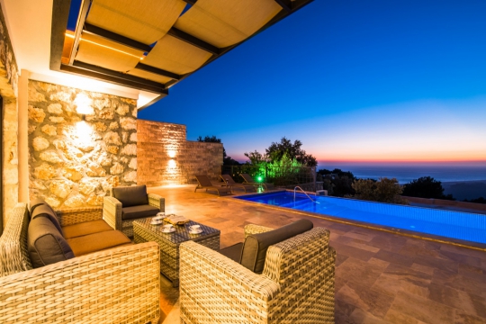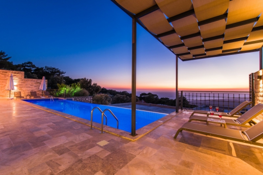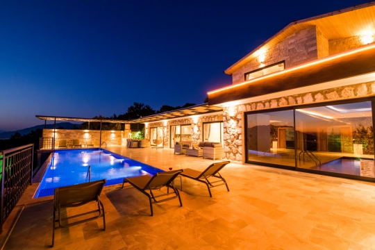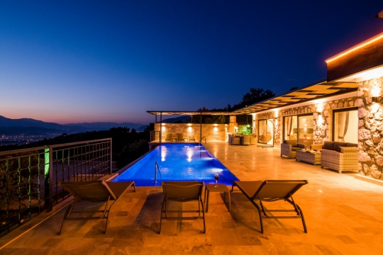 Kalkan Patara mevkisinde bulunan kiralık balayı villası, geniş aileler ve arkadaş grupları için oldukça uygun bir seçenektir. Muhafazakar villalar ve jakuzili villalar kategorisinde yer alan villamız, 3 yatak odası ile 6 kişilik konaklama kapasitesine sahiptir. Havuzu korunaklı ve bahçesi dışarıdan görünmeyen Villa Kızıl Güneş’in harika bir Patara kumsalı manzarası bulunmakta olup, hiçbir yerde göremeyeceğiniz gün batımlarını burada izleyebilirsiniz. Ayrıca villamızda yer alan hamam, sauna, kapalı ısıtmalı havuz ve jakuzi gibi özelliklerle bütün bir yılın yorgunluğunu üzerinizden atabilirsiniz. .