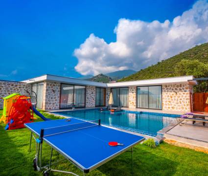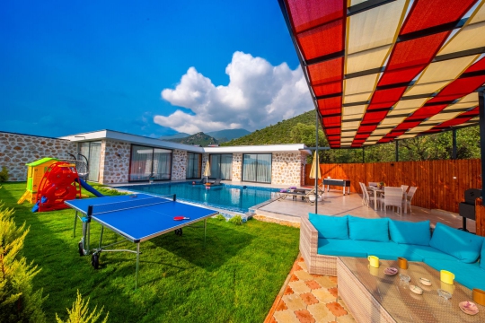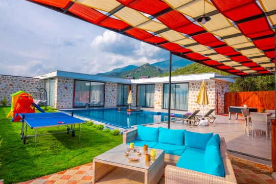 Villa Koacer 1, Kalkan Çavdır mevkiinde konumlanan, havuzu tam korunaklı villamızdır. Villamız, çocuklu aileler ve balayı misafirleri için çok ideal bir seçenektir. Renkli ve kaliteli bir dizaynı bulunan villamız, misafirlerimizin memnuniyeti adına tüm detaylar düşünülerek tasarlanmıştır. Ayrıca villamız da masa tenisi, langırt, salıncak, çocuk parkı bulunmaktadır.