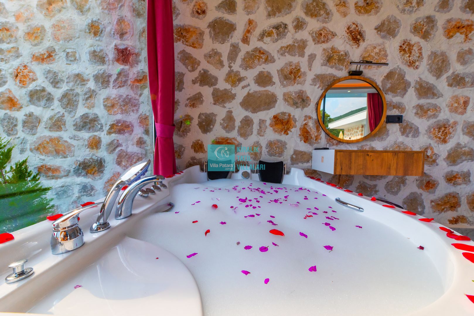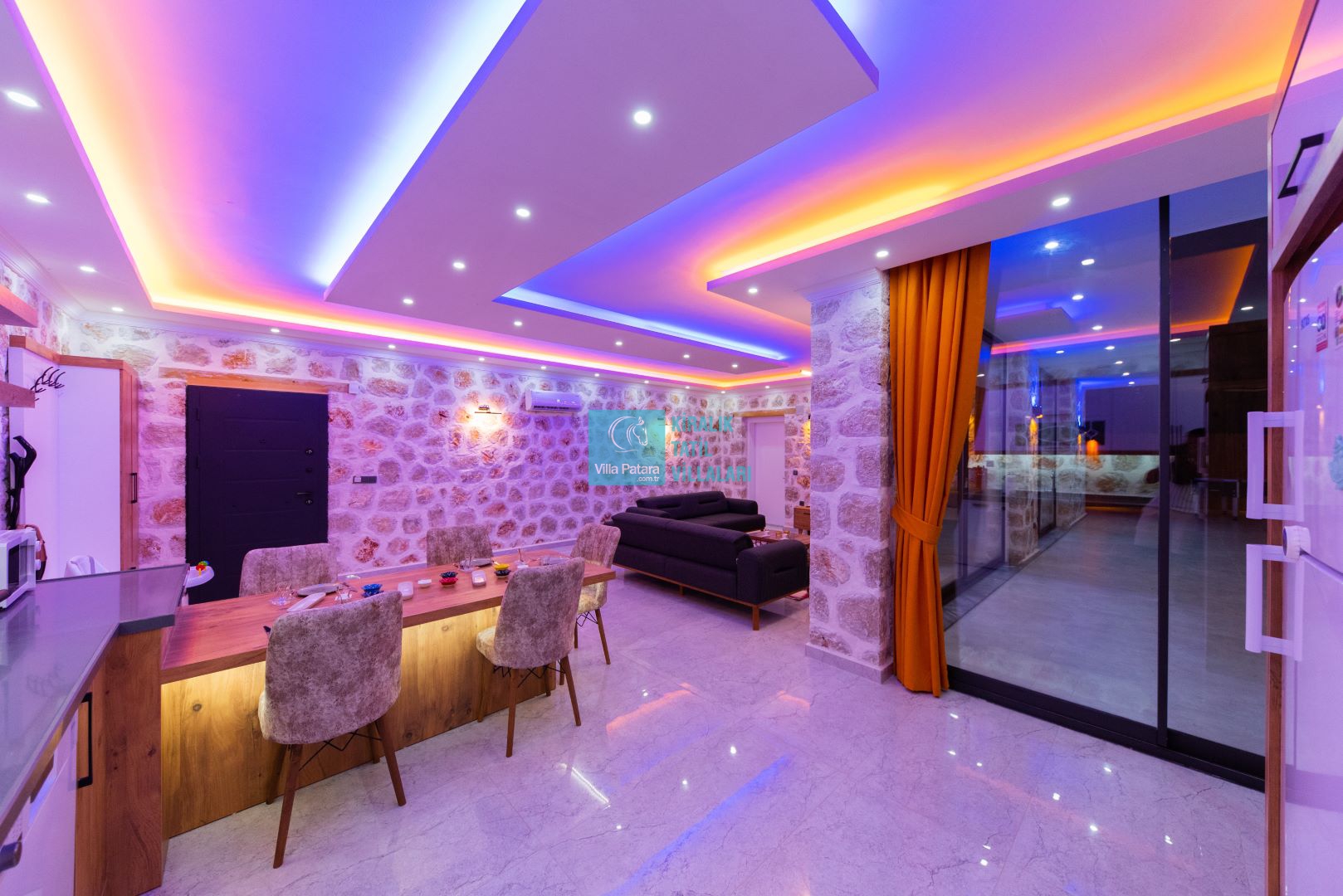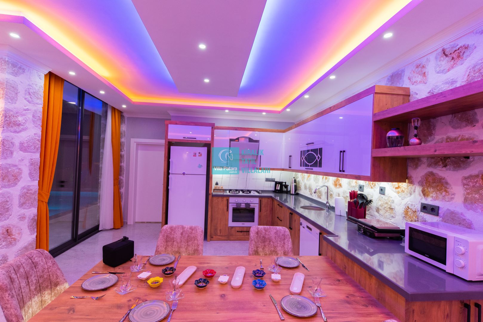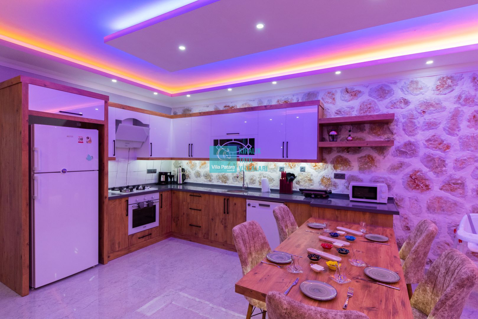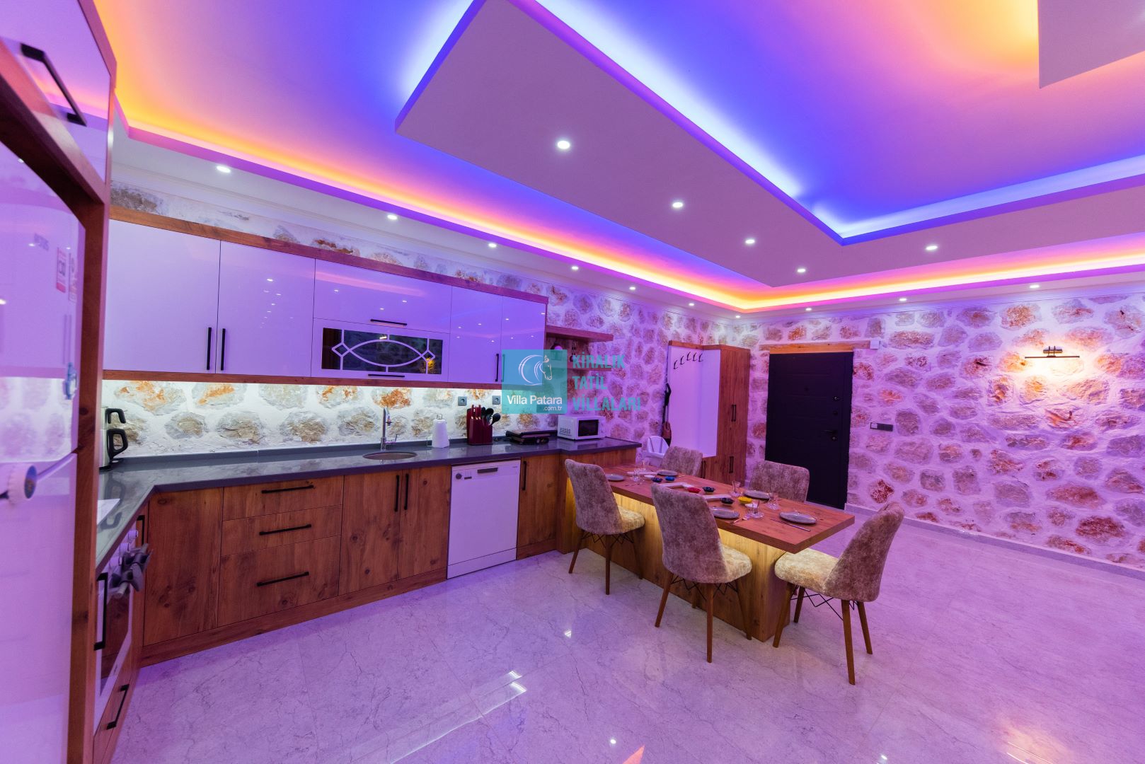 Villamızın iki adet yatak odası ve iki adet banyosu bulunmaktadır. Birinci yatak odası içerisinde bir adet çift kişilik yatak, banyo, jakuzi, klima ve televizyon; ikinci yatak odası içerisinde iki adet tek kişilik yatak, banyo ve klima yer almaktadır. Salon içerisinde mutfak, oturma grubu, televizyon ve klima yer almaktadır.