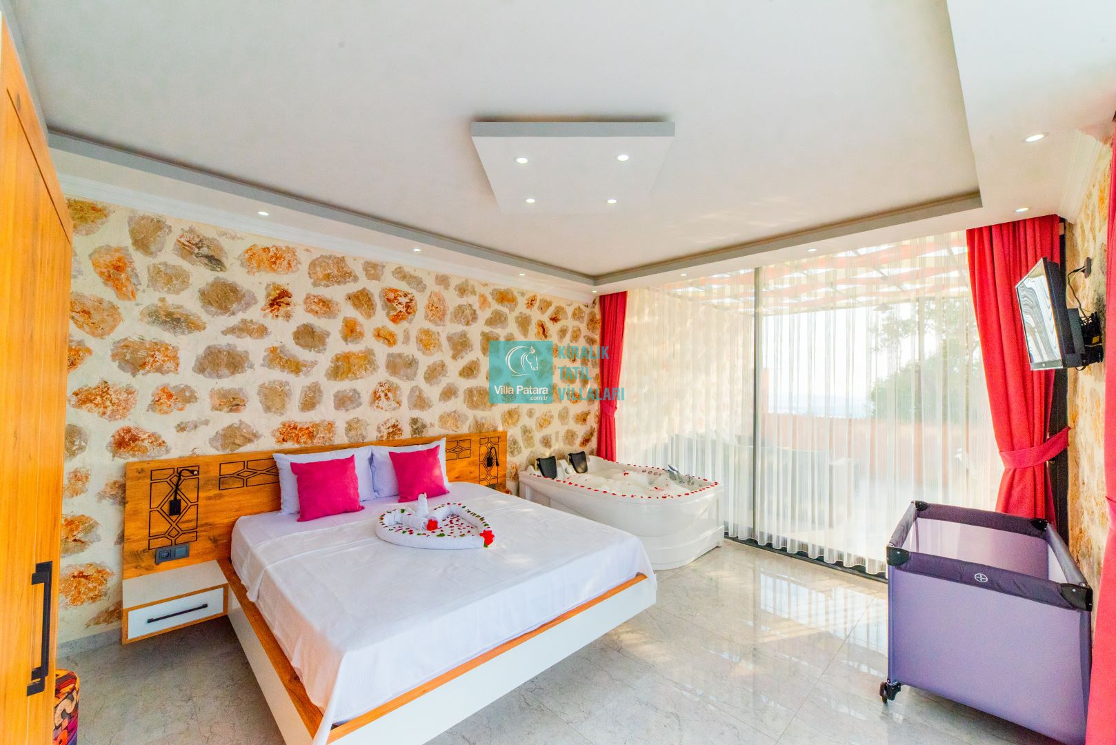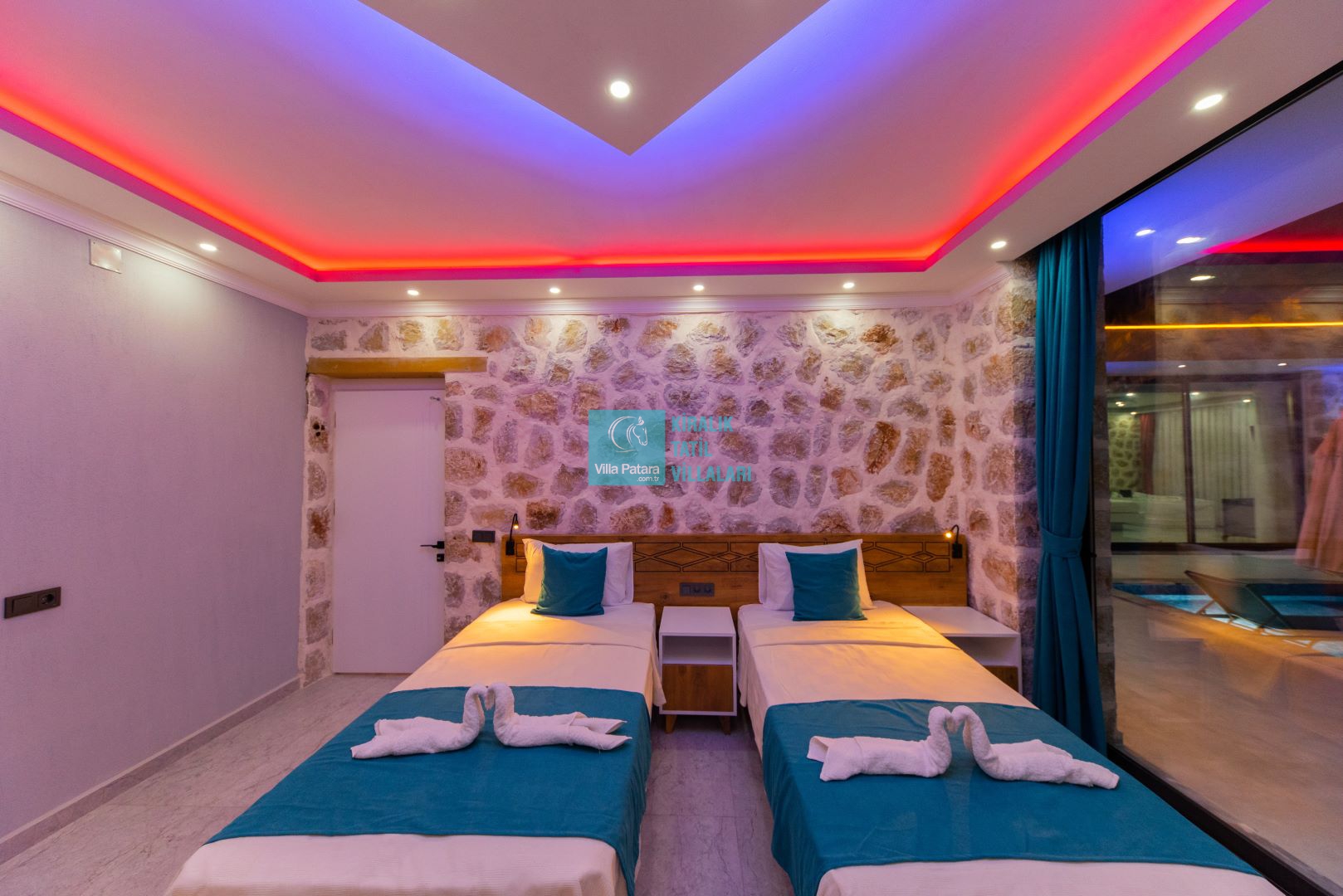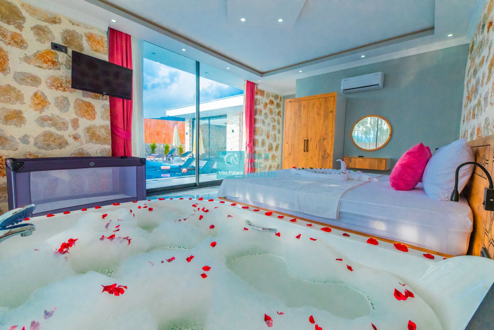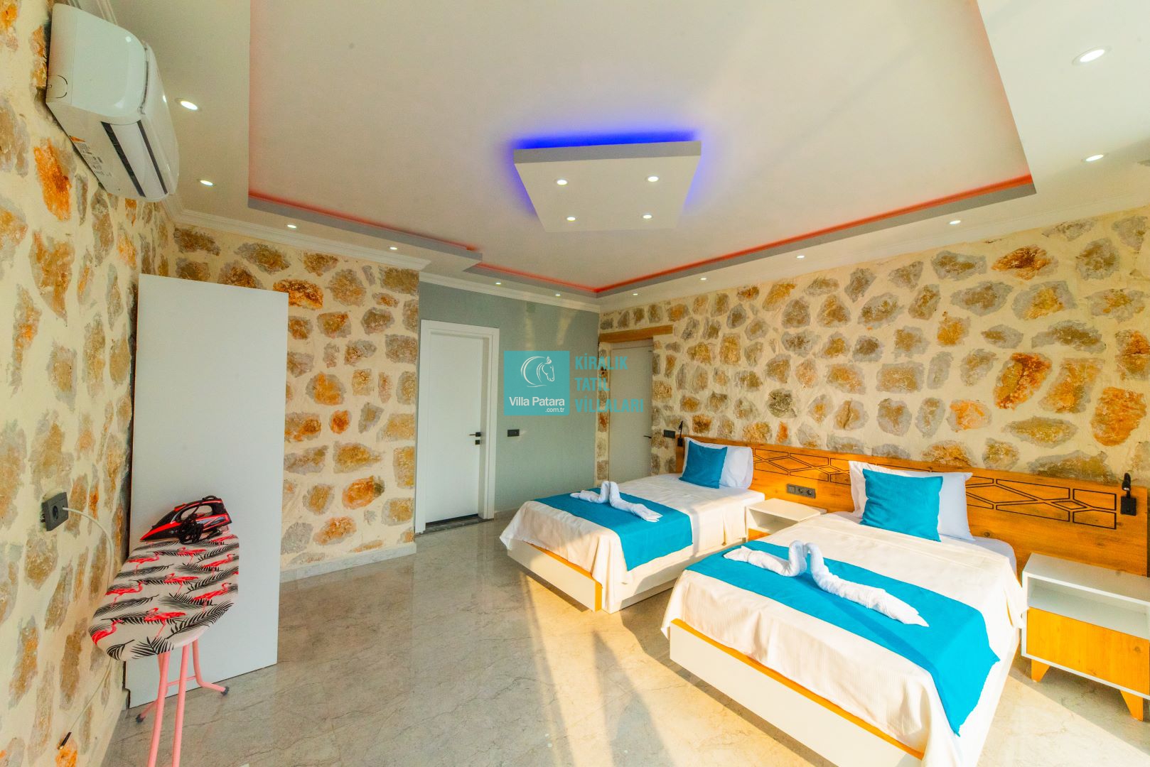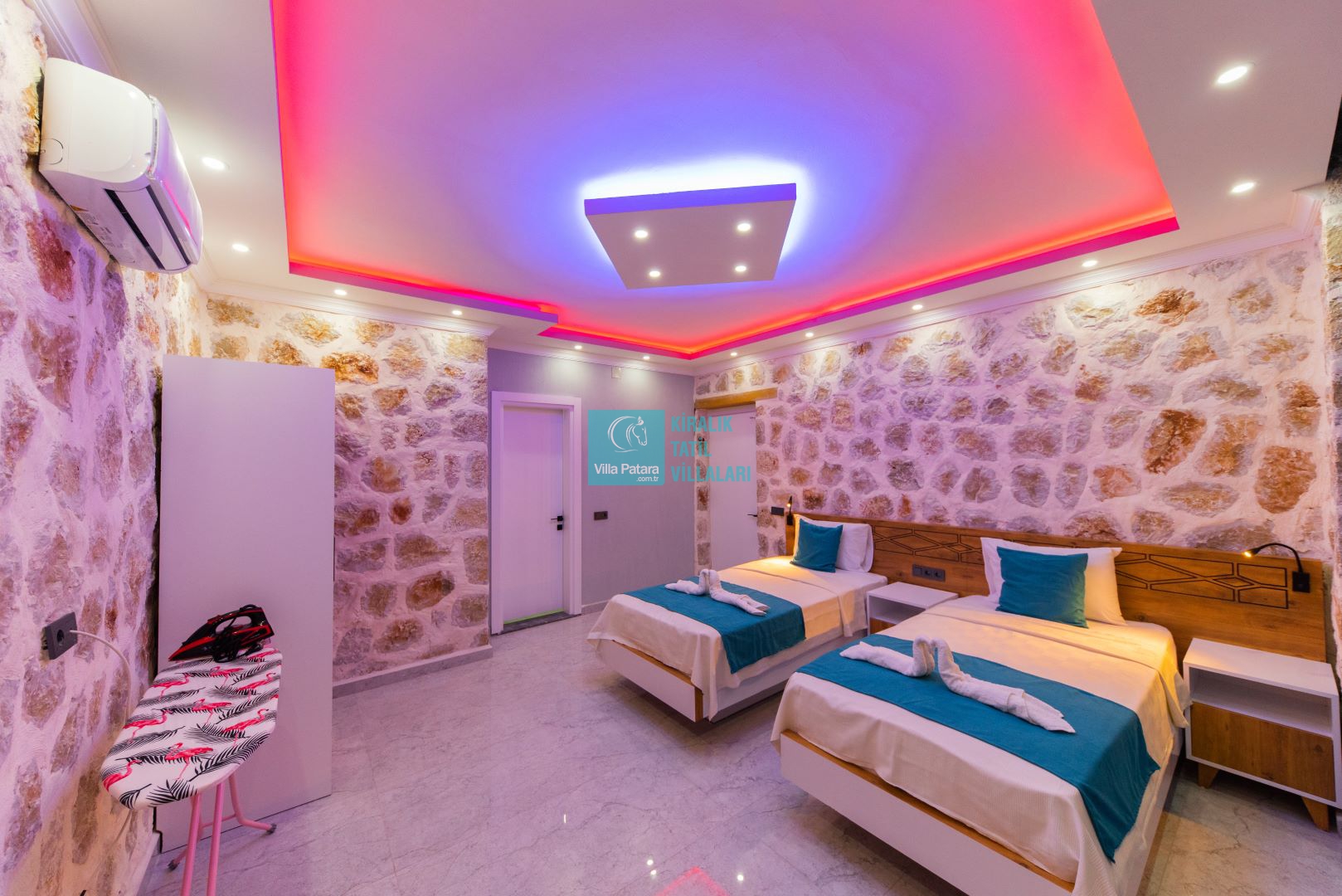 Villamızın iki adet yatak odası ve iki adet banyosu bulunmaktadır. Birinci yatak odası içerisinde bir adet çift kişilik yatak, banyo, jakuzi, klima ve televizyon; ikinci yatak odası içerisinde iki adet tek kişilik yatak, banyo ve klima yer almaktadır. Salon içerisinde mutfak, oturma grubu, televizyon ve klima yer almaktadır.