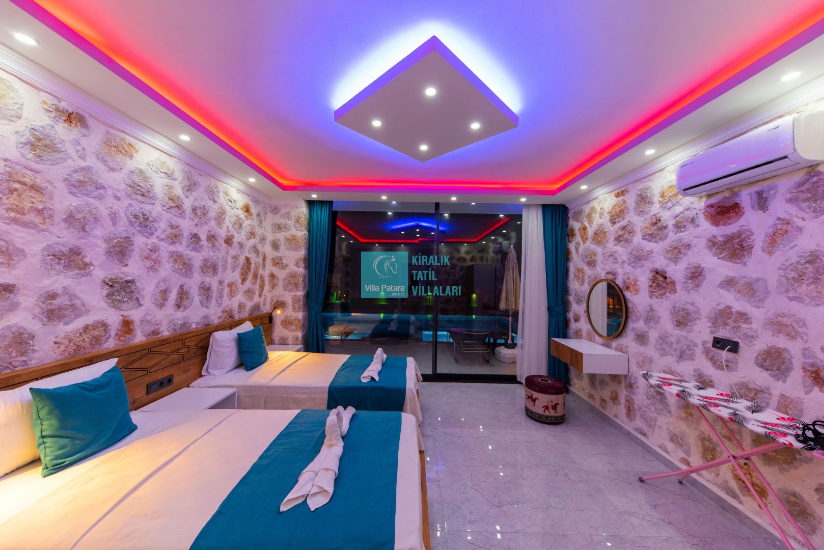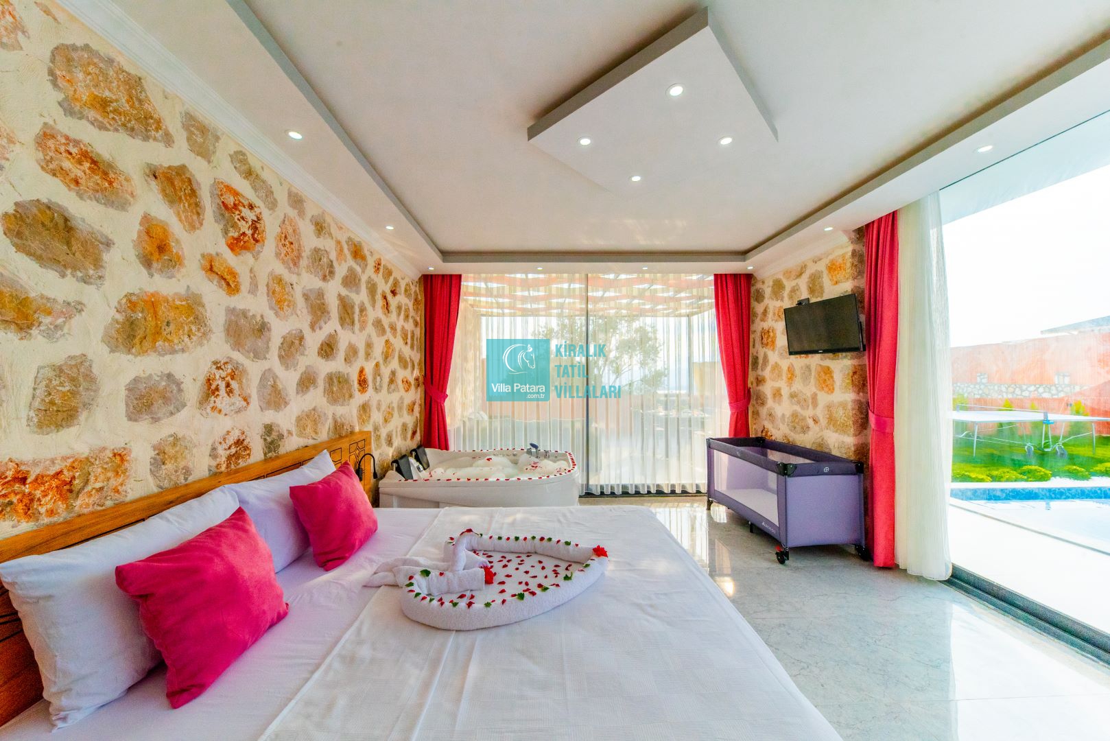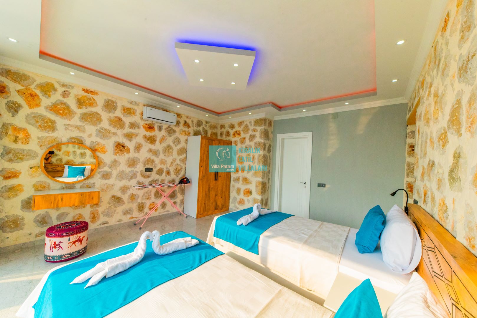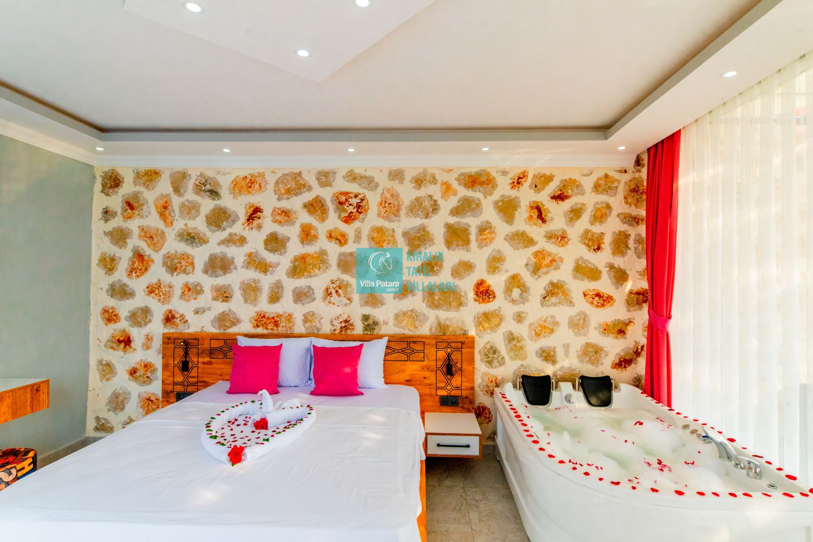 Villamızın iki adet yatak odası ve iki adet banyosu bulunmaktadır. Birinci yatak odası içerisinde bir adet çift kişilik yatak, banyo, jakuzi, klima ve televizyon; ikinci yatak odası içerisinde iki adet tek kişilik yatak, banyo ve klima yer almaktadır. Salon içerisinde mutfak, oturma grubu, televizyon ve klima yer almaktadır.