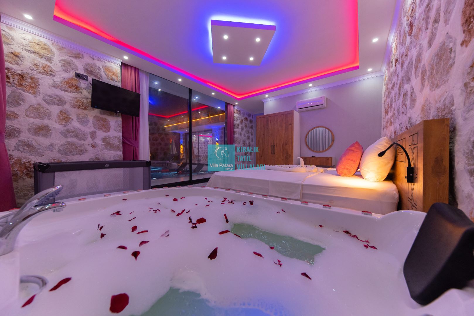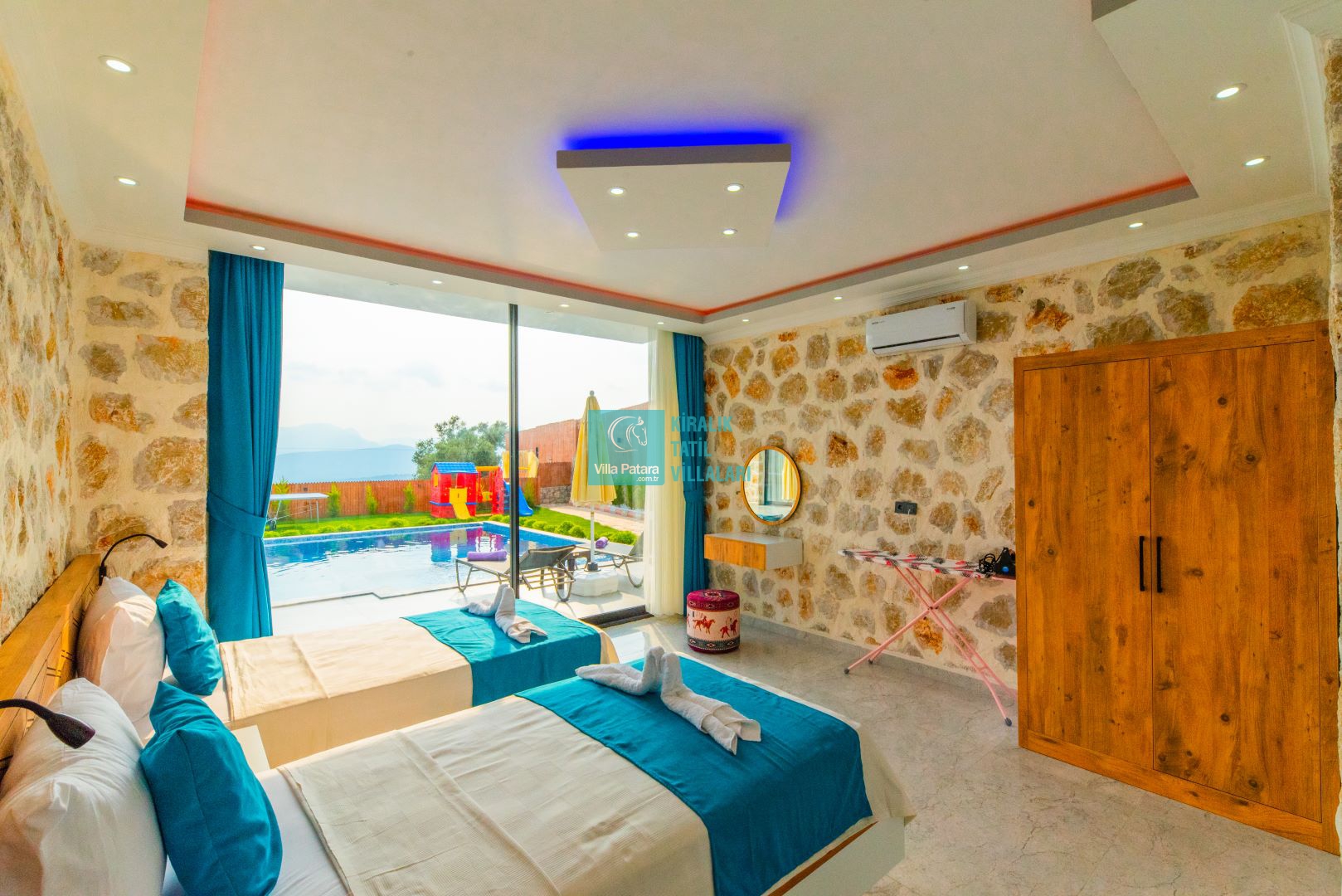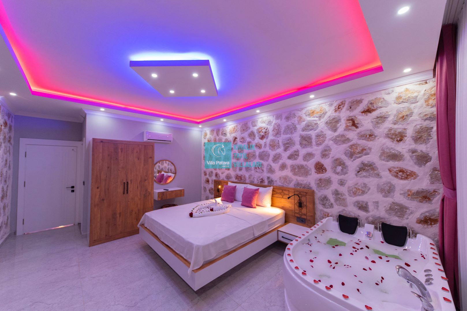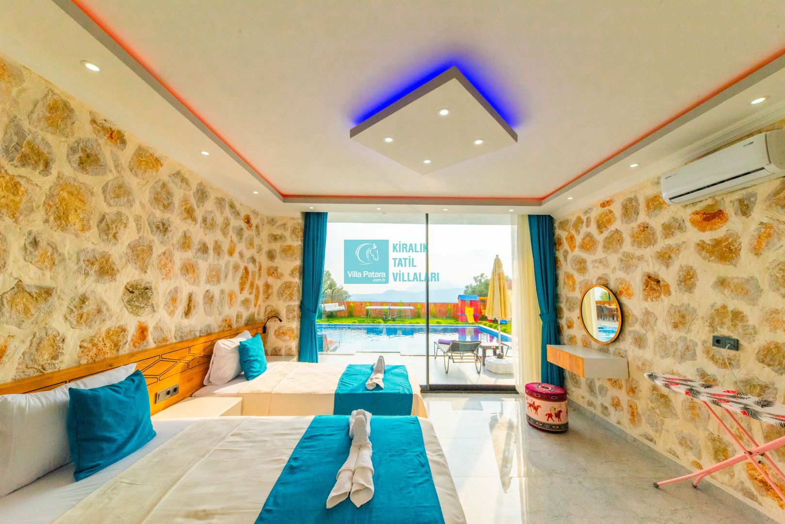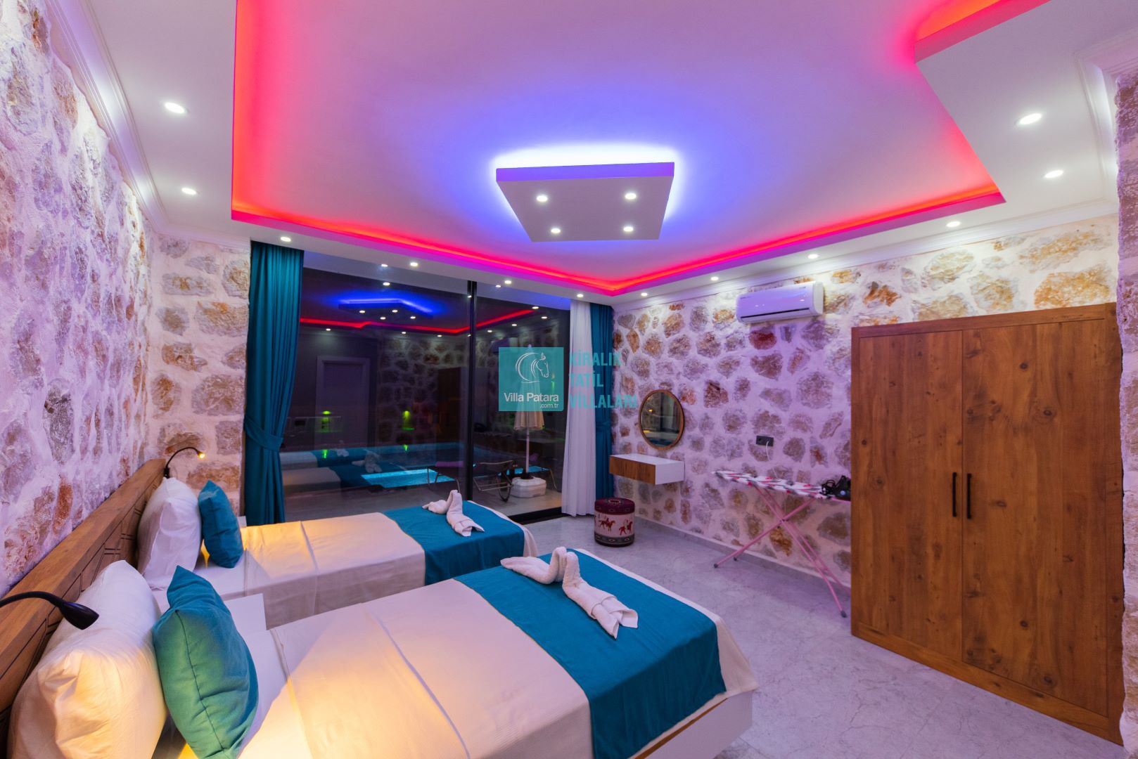 Villamızın iki adet yatak odası ve iki adet banyosu bulunmaktadır. Birinci yatak odası içerisinde bir adet çift kişilik yatak, banyo, jakuzi, klima ve televizyon; ikinci yatak odası içerisinde iki adet tek kişilik yatak, banyo ve klima yer almaktadır. Salon içerisinde mutfak, oturma grubu, televizyon ve klima yer almaktadır.