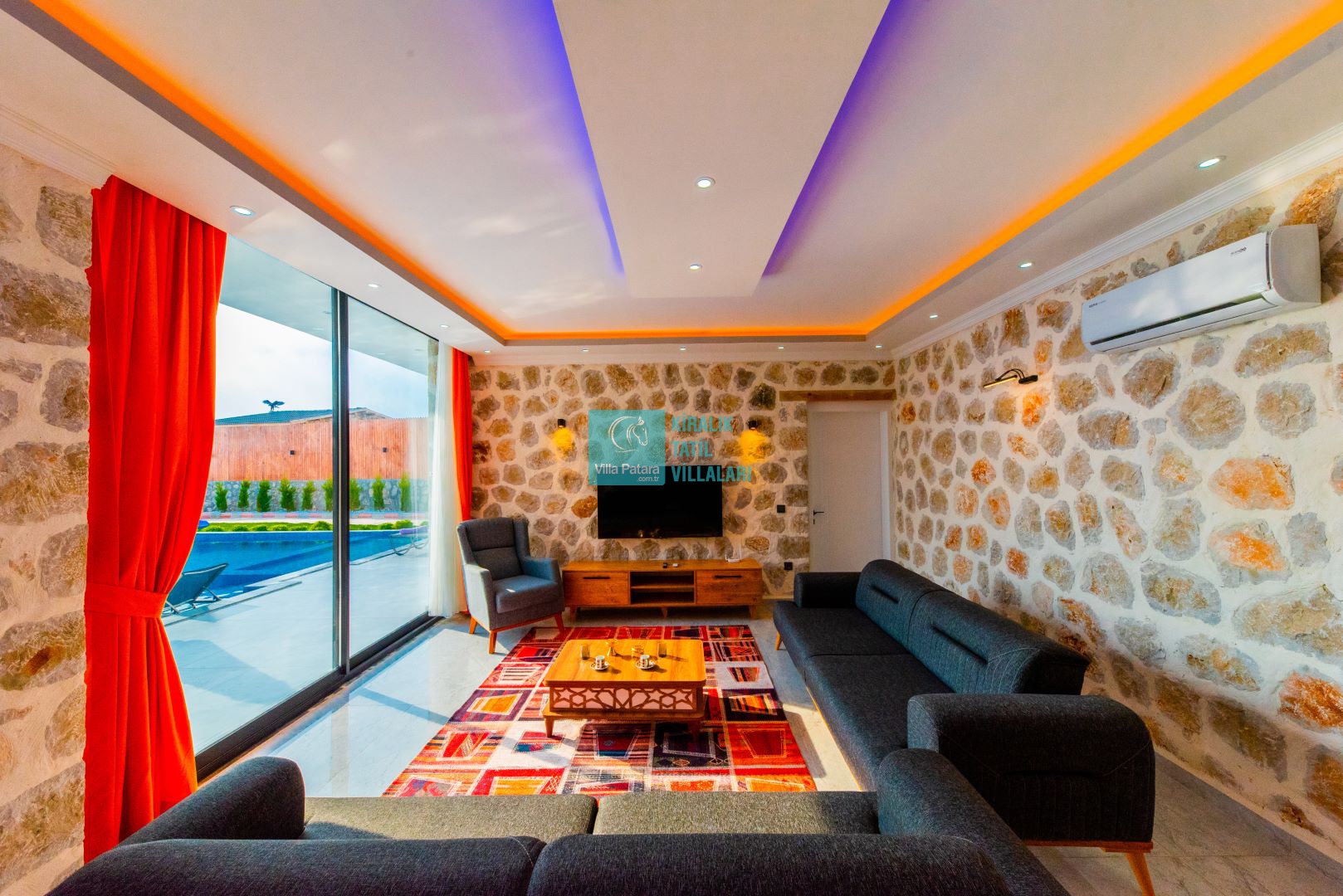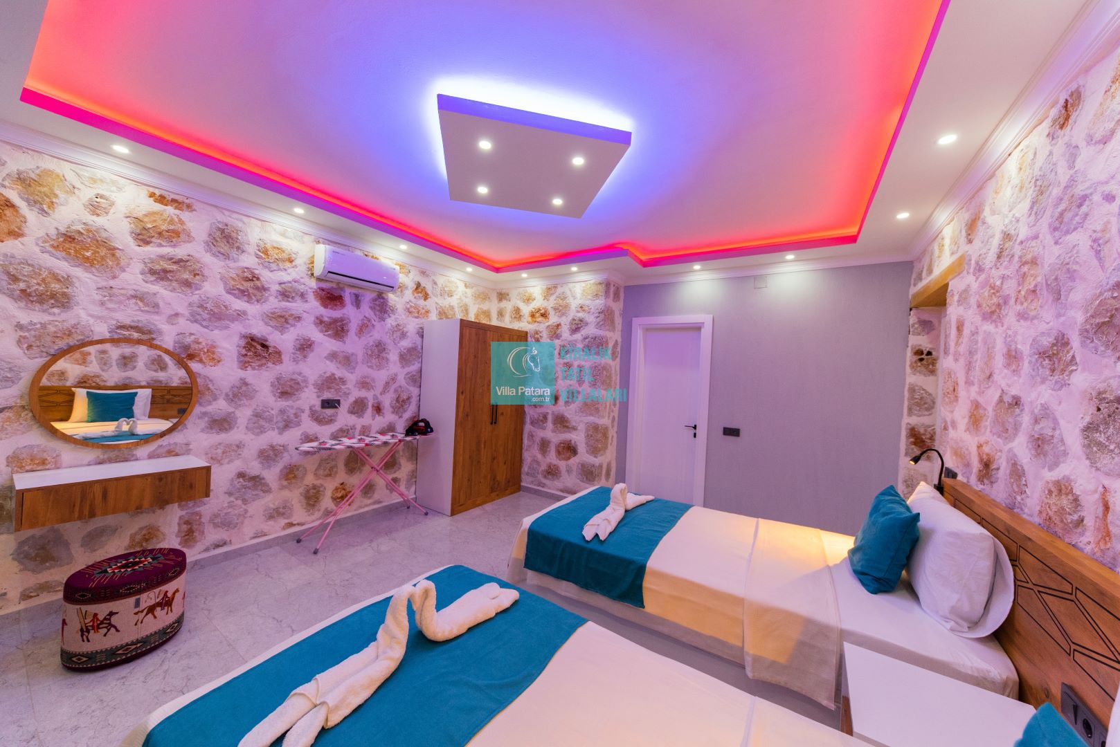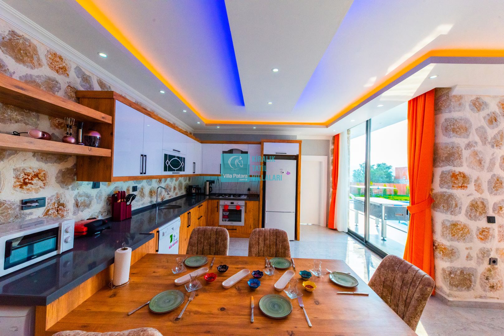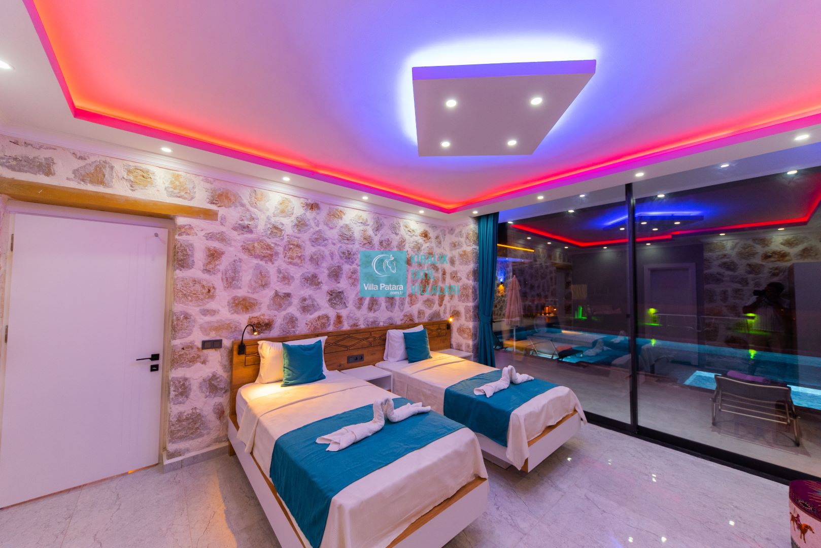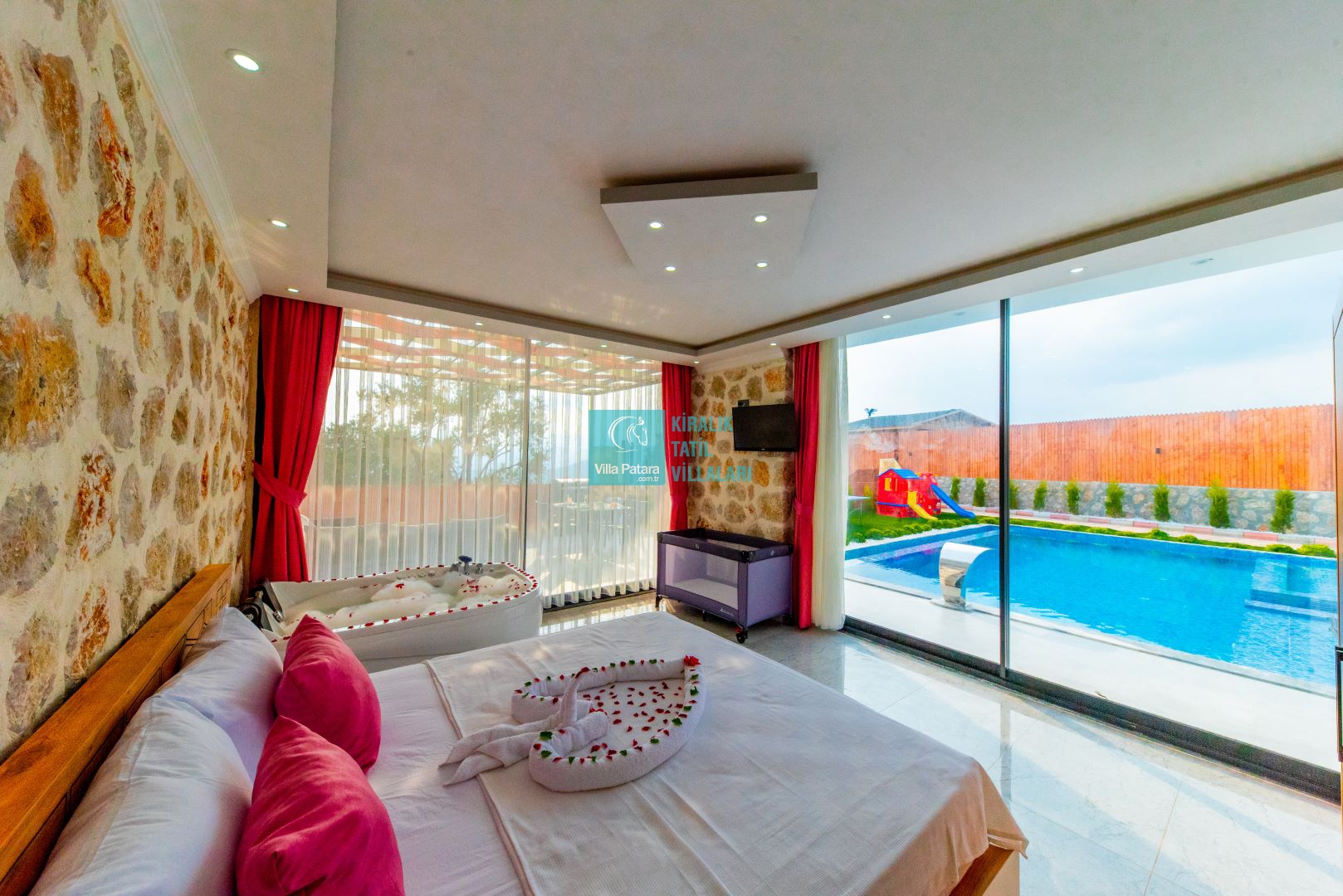 Villamızın iki adet yatak odası ve iki adet banyosu bulunmaktadır. Birinci yatak odası içerisinde bir adet çift kişilik yatak, banyo, jakuzi, klima ve televizyon; ikinci yatak odası içerisinde iki adet tek kişilik yatak, banyo ve klima yer almaktadır. Salon içerisinde mutfak, oturma grubu, televizyon ve klima yer almaktadır.