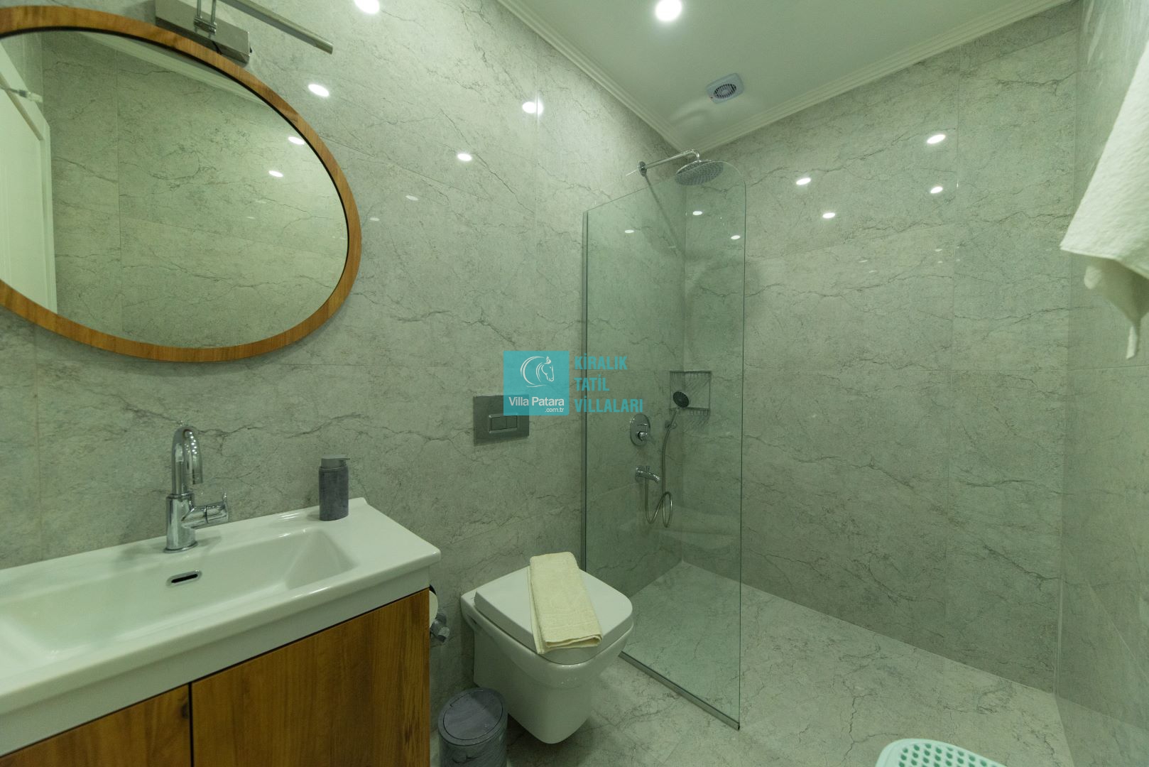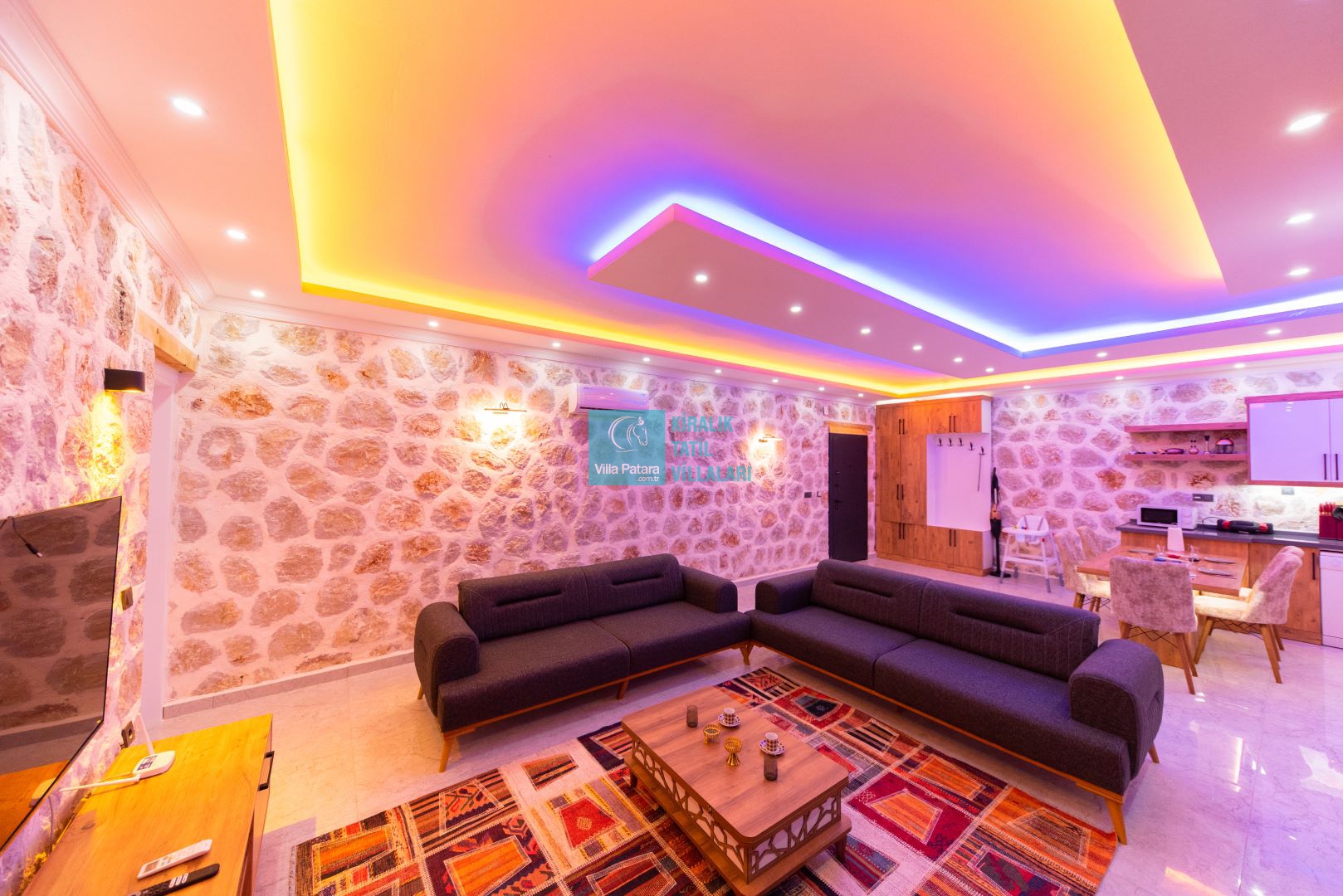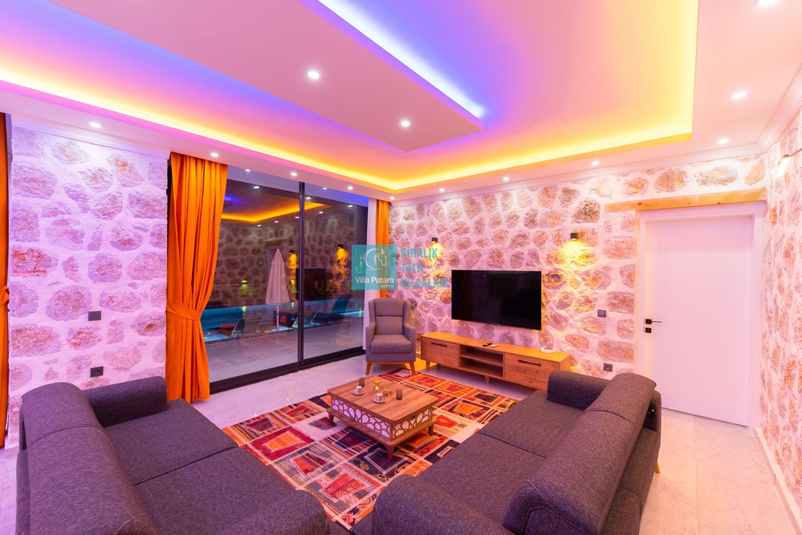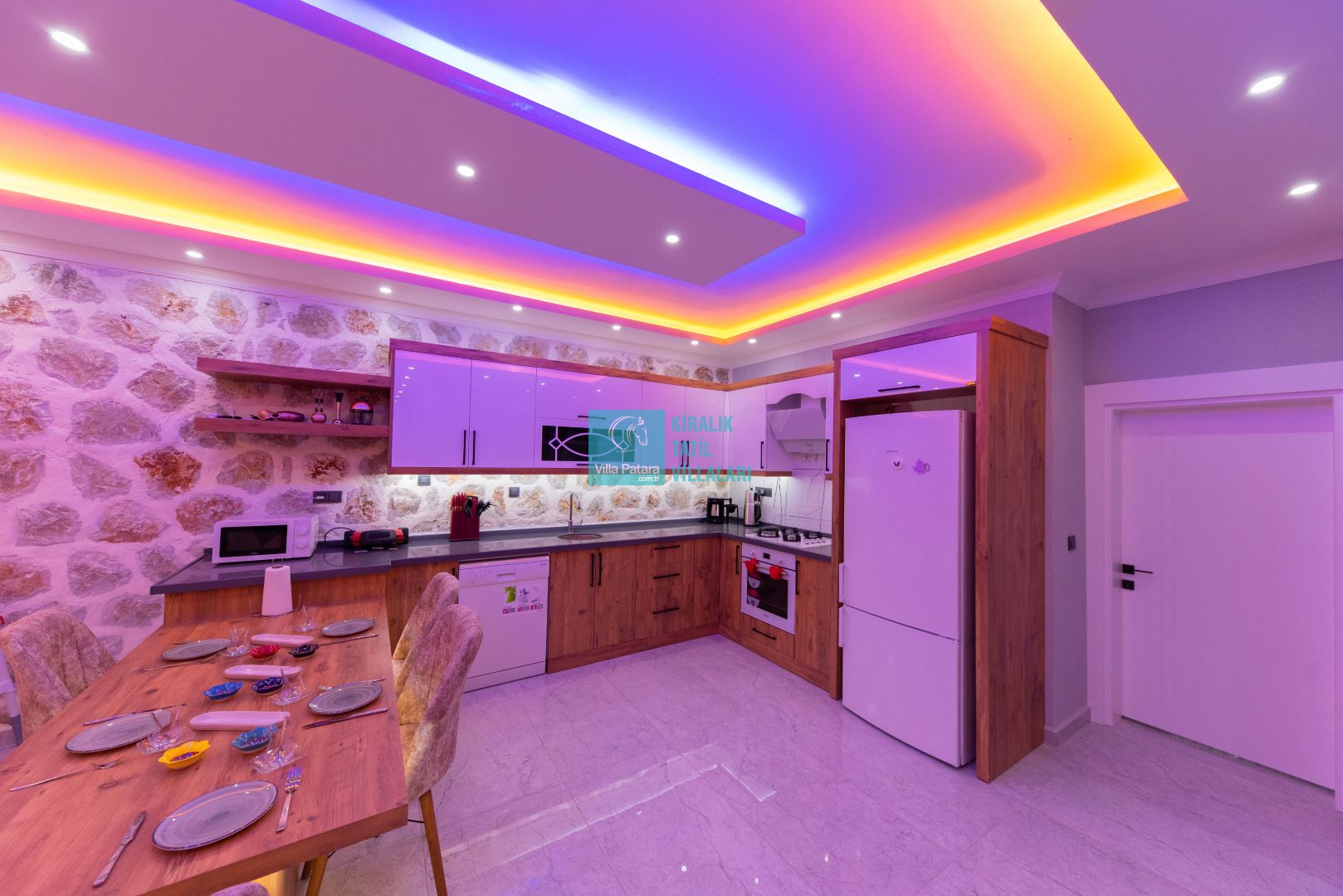 Villamızın iki adet yatak odası ve iki adet banyosu bulunmaktadır. Birinci yatak odası içerisinde bir adet çift kişilik yatak, banyo, jakuzi, klima ve televizyon; ikinci yatak odası içerisinde iki adet tek kişilik yatak, banyo ve klima yer almaktadır. Salon içerisinde mutfak, oturma grubu, televizyon ve klima yer almaktadır.