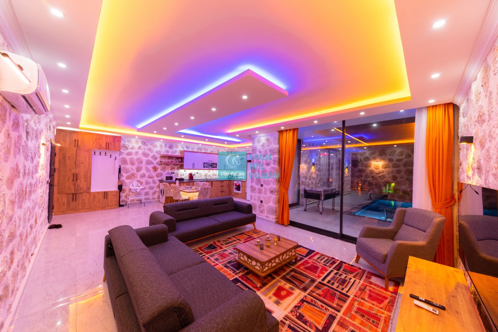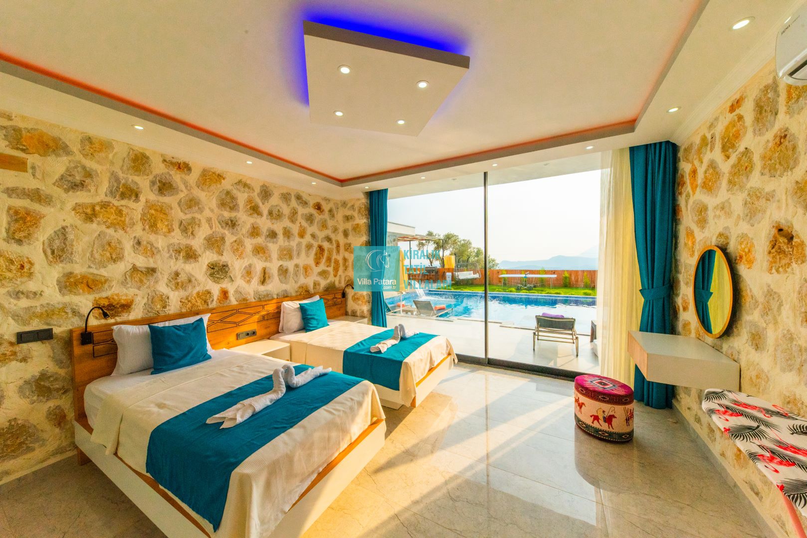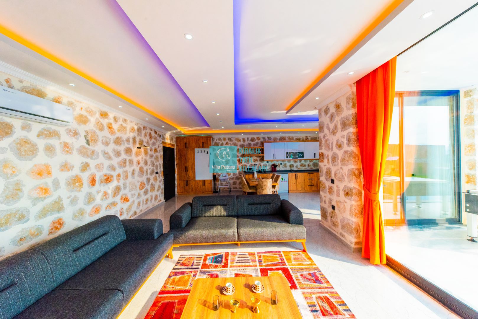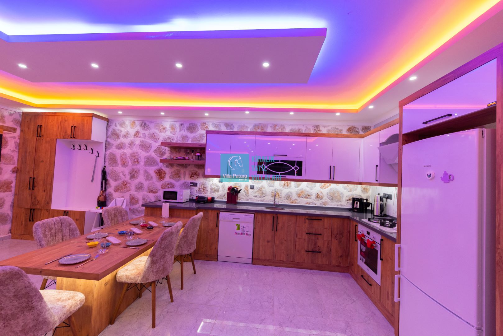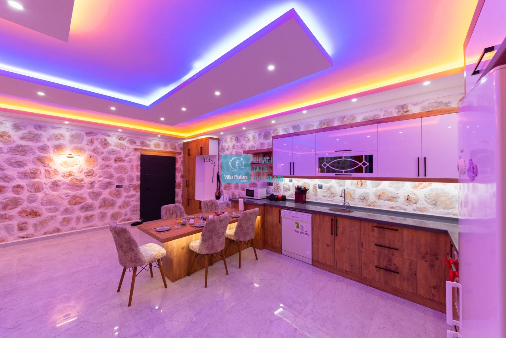 Villamızın iki adet yatak odası ve iki adet banyosu bulunmaktadır. Birinci yatak odası içerisinde bir adet çift kişilik yatak, banyo, jakuzi, klima ve televizyon; ikinci yatak odası içerisinde iki adet tek kişilik yatak, banyo ve klima yer almaktadır. Salon içerisinde mutfak, oturma grubu, televizyon ve klima yer almaktadır.
