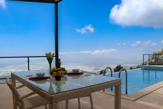 Yatak odamızda manzaranın tam karşısına konumlandırılmış eni 2m boyu 4m ölçülerinde olan bir adet jakuzili kapalı havuzumuz mevcuttur. Bütün odalarımız villamıza özel olarak yapılmış sonsuz havuza açılmaktadır.