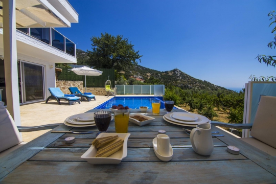 Kalkan İslamlar köyünde bulunan kiralık balayı villası, doğa içinde şehrin gürültüsünden uzak bir tatil isteyen çiftlerimiz için ideal bir villadır. Muhafazakar villalar ve balayı villaları kategorisinde yer alan villamız, tek yatak odası ile 2 kişilik konaklama kapasitesine sahiptir. Havuzu korunaklı ve bahçesi dışarıdan görünmeyen Villa Koybal, mahremiyete önem veren çiftlerimiz için huzur dolu bir tatil fırsatı sunuyor. Ayrıca dış havuzunun ısıtmalı bir sisteme sahip olması sayesinde soğuk günlerde de havuz keyfine devam edebilme imkanı sağlamaktadır.