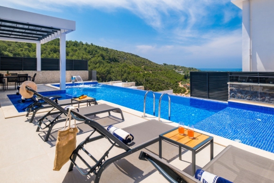 Villa Kumsal 3 yatak odalı 7 kişi konaklama kapasiteli kiralık villadır. Geniş aileli ve çocuklu ailelerin tercihidir. Bu lüks villanın tüm odaları suit olarak tasarlanmış. Konforlu ve keyifli bir tatil için gereken her şeye sahiptir.
