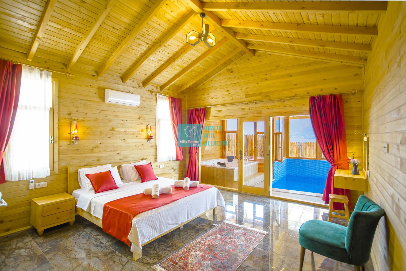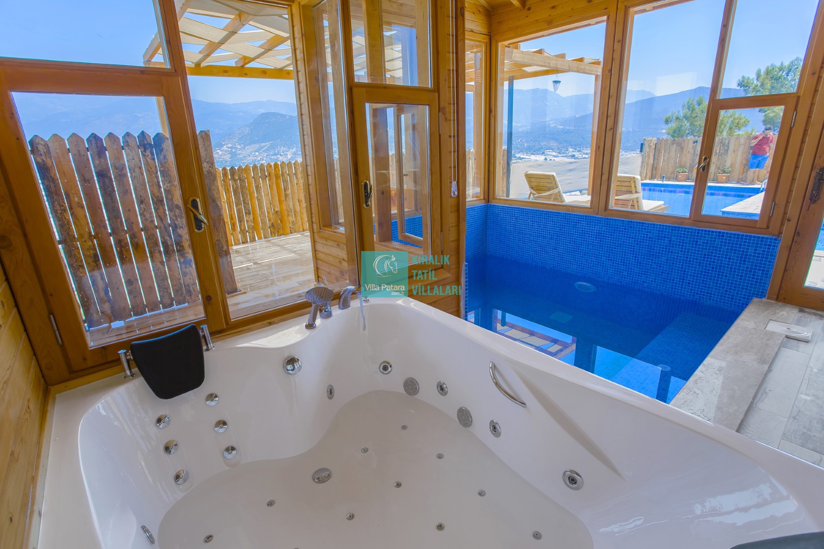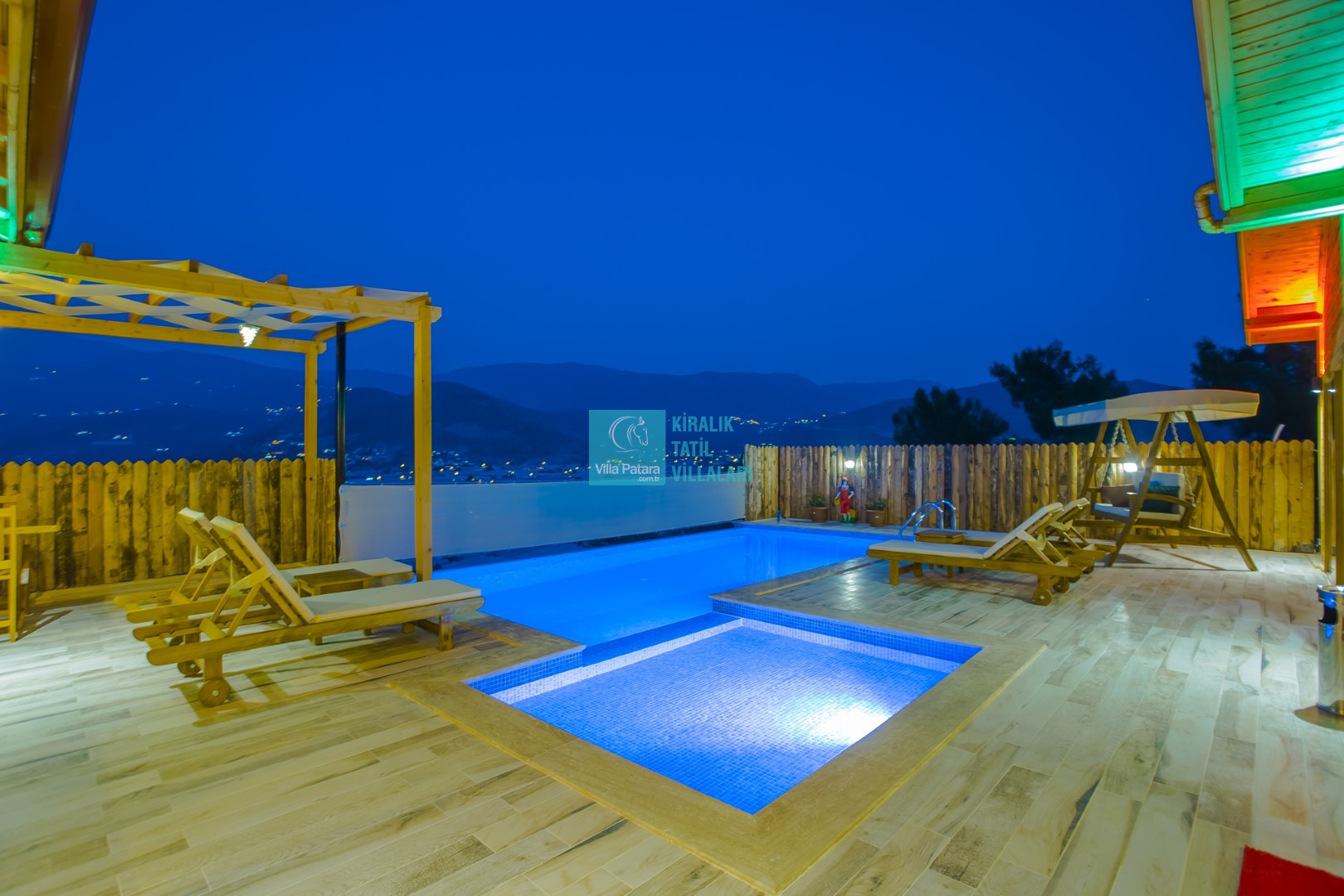 Kalkan Yeşilköy bölgesinde mükemmel bir arsa üzerine kurulmuş yepyeni lüks kiralık villa seçeneğimizdir. Sizleri mükemmel bir tatil için davet etmektedir. Muhafazakar villalar, kapalı havuzlu villalar ve jakuzili villalar kategorisinde yer alan villamız, 4 kişilik konaklama kapasitesine sahiptir. Yemyeşil doğa içerisinde kurulu olan villamız, 2 süit yatak odasından oluşmakta olup, balayı çiftleri ve muhafazakar aileler için ideal bir seçenektir. Şehrin gürültüsünden uzakta, sessiz ve sakin bir ortamda tatilini gerçekleştirmek isteyen misafirlerimiz için, bu villamız biçilmiş kaftandır. Büyüleyici doğa manzarasıyla ön plana çıkan, akşamları sevdiğinizle birlikte unutulmaz anlar yaşayabileceğiniz tatil villamızın, havuz terası da korunaklı olup etraftan görünmemektedir. Villamız, 2020 Temmuz ayında inşası tamamlanmış olup, siz değerli misafirlerini beklemektedir. Ayrıca villamızın hemen yanında 2 yatak odalı Villa Güney bulunmaktadır. Daha kalabalık ve iki ayrı villa kiralamak isteyen misafirlerimiz için ideal bir seçenek olacaktır.