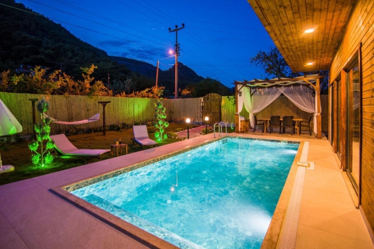 Oldukça geniş yemyeşil bahçesi bulunan villamızın bahçe alanı ve havuzu korunaklı olup bir villa tatili seçeneği sunmaktadır.
