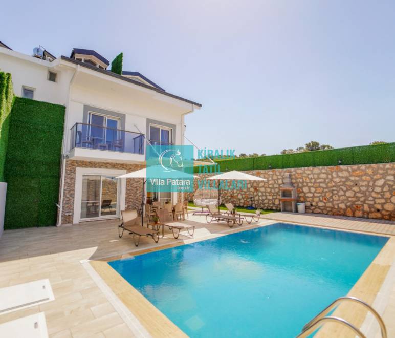 Villa Letoon 1, Fethiye’nin Kumluova bölgesinde Patara plajına karşı konumlanmış 4 yatak odalı özel havuzlu bir villadır. Havuzu oldukça büyük olan villamızda huzurlu ve sakin tatil keyfini sonsuz yaşayacaksınız. Villamızın Kendine ait özel bahçesi ve havuzu mevcuttur.
