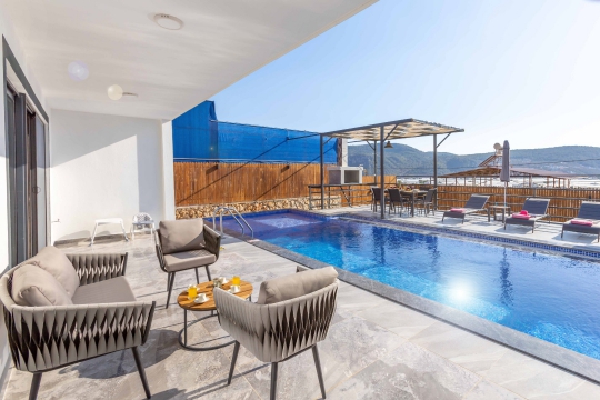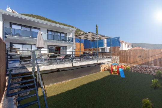 Villa Levent, Kalkan Yeşilköy'de bulunan 3 yatak odalı toplam 6 kişi konaklama kapasitesine sahip villa seçeneklerimizdendir. Villamızın havuz terası tamamen korunaklı olup muhafazakar villa kategorisinde yer almaktadır. Doğa içerisinde konumlu villamızın, havuz alanında mini oyun parkı bulunmaktadır. Sade ve konforlu eşyalarla dizayn edilmiş olup suit yatak odasında jakuzi bulunmaktadır.