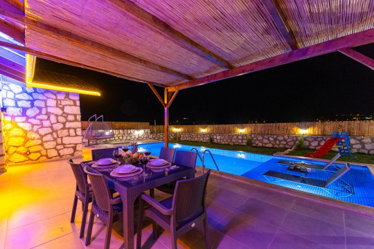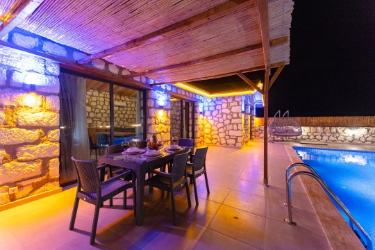 Kalkan Sarıbelen Mevkiinde bulunan sessizliğin, huzurun hakim olduğu bir villada tatil isteyen çiftler için oldukça uygun bir seçenektir. Muhafazakar villalar ve Balayı Villaları kategorisinde yer alan villamız, 1 yatak odası ile 2 kişilik konaklama kapasitesine sahiptir. Havuzu korunaklı ve bahçesi dışarıdan görünmeyen villamız mahremiyete önem veren çiftler için huzur dolu bir tatil fırsatı sunuyor. Ayrıca Villamızın yatak odasında 2 kişilik jakuzi konforuda yer almaktadır.
