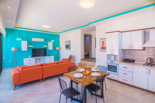 Mutfak : Modern amerikan mutfaktır bulaşık makinası, buzdolabı, çamaşır makinası, mikrodalga fırın, ankastre fırın, ankastre 4’lü ocak, ekmek kızartma makinası, elektrikli su ısıtıcı kettle, yemek takımı, tencere ve tava, kaşık ve çatal seti vb. ekipmanlar mevcuttur.
