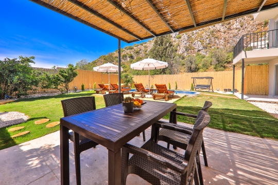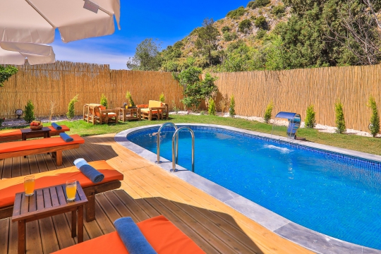 Kalkan Patara bölgesinde yemyeşil doğa içinde 2021 yılında inşası yapılmış yepyeni kiralık tatil villasıdır. Kiralık Villa Limon, muhafazakar villalar, jakuzili villalar ve balayı villaları kategorisinde yer almaktadır. Büyüleyici doğa manzarasına sahip odasıyla ön plana çıkan, akşamları sevdiğinizle birlikte unutulmaz anlar yaşayabileceğiniz tatil villamızın havuz terası da korunaklı olup etraftan görünmemektedir. Yemyeşil doğa içerisinde kurulu olan villamız, 2 süit yatak odasından oluşmakta olup, balayı çiftleri ve muhafazakar aileler için ideal bir seçenektir. Ayrıca villamızın bir odasında jakuzi bulunmaktadır. Şehrin gürültüsünden uzakta, sessiz ve sakin bir ortamda tatilini gerçekleştirmek isteyen misafirlerimiz için, bu villamız biçilmiş kaftandır. Kiralık Villa Limon, mükemmel bir tatil için, siz değerli misafirlerini beklemektedir.
