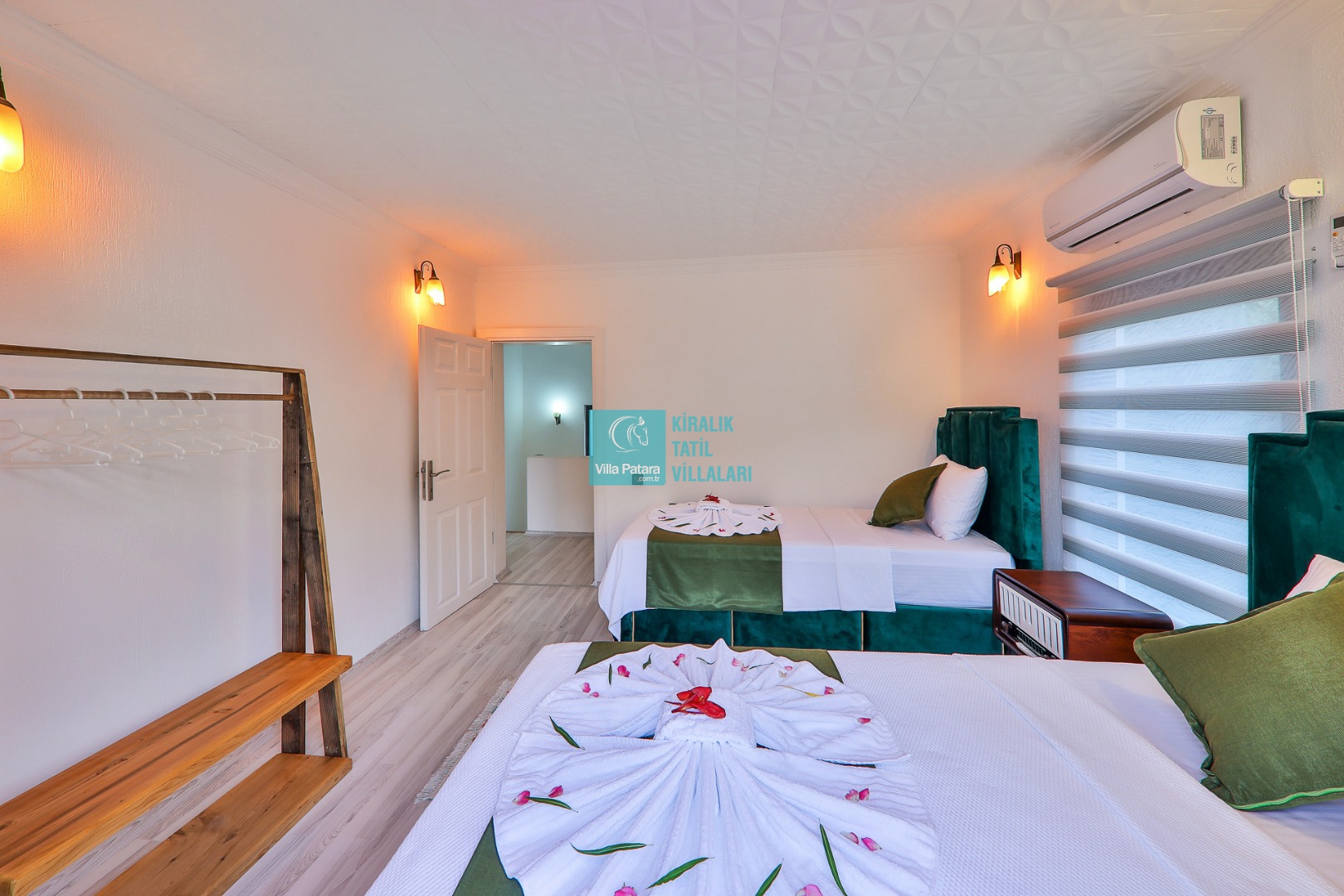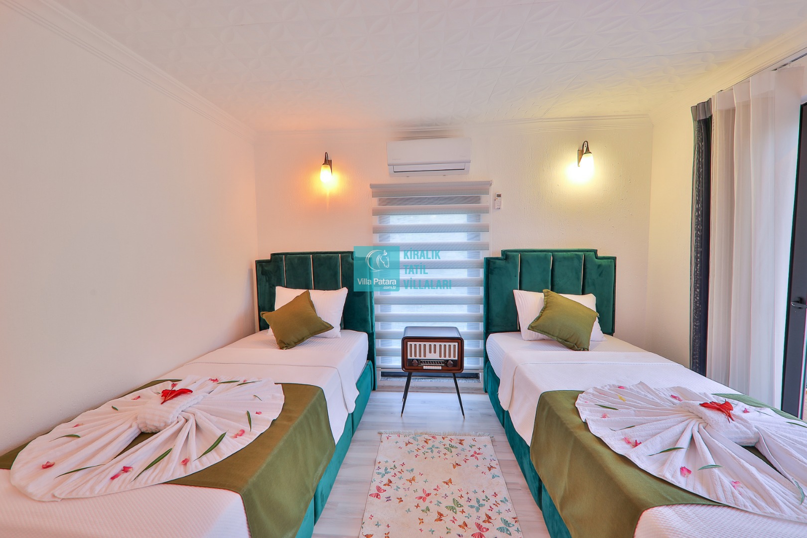 2. Yatak Odası : İki adet tek kişilik yatak, elbise dolabı, komodin, klima, banyo ve tuvalet ortak kullanımdır.