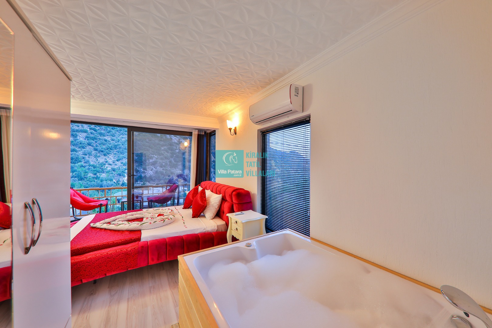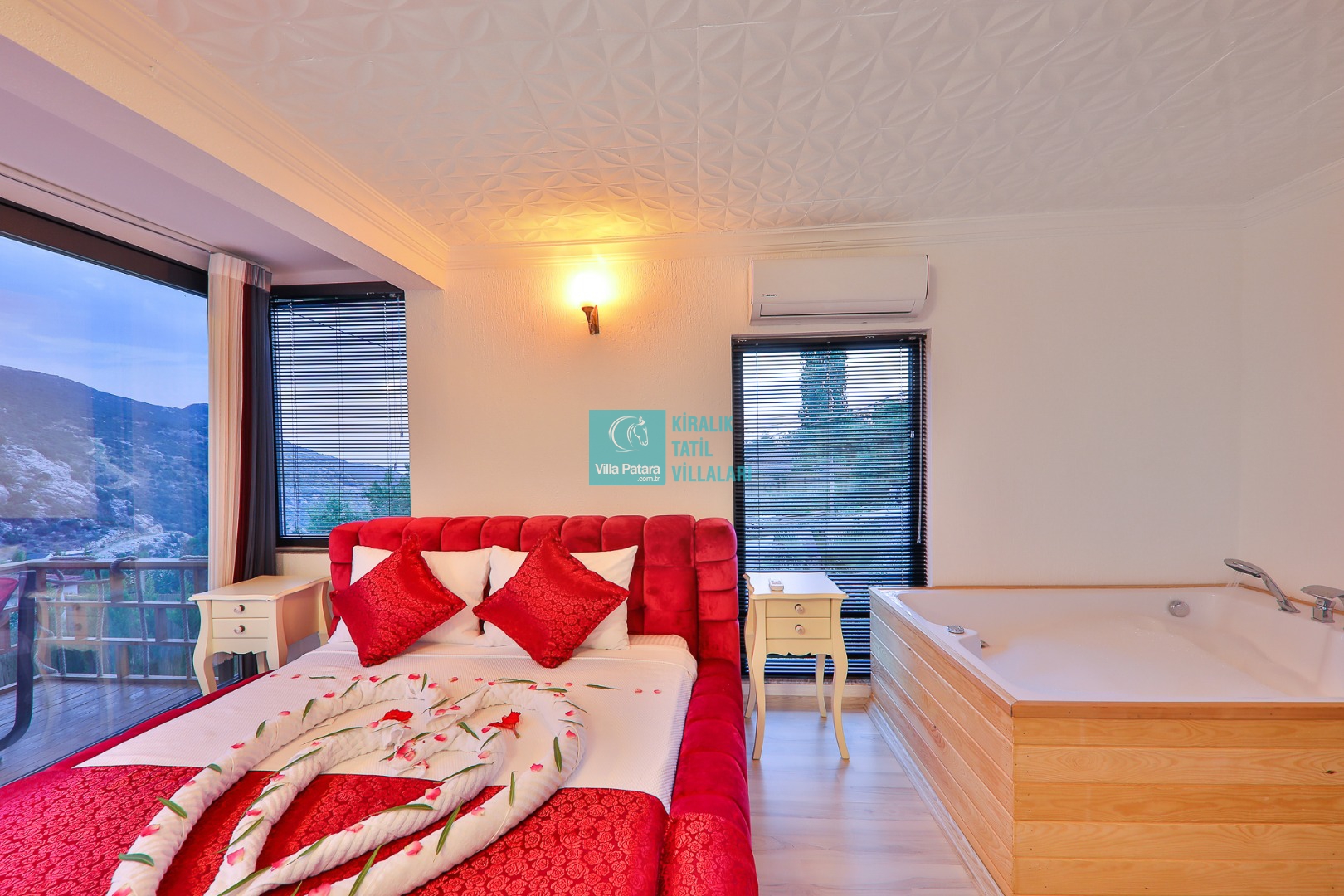 1. Yatak Odası : Bir adet çift kişilik yatak, elbise dolabı, komodin, makyaj masası, klima, jakuzi, banyo ve tuvalet bulunmaktadır.