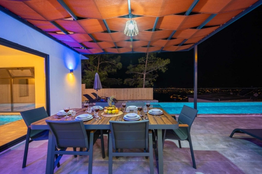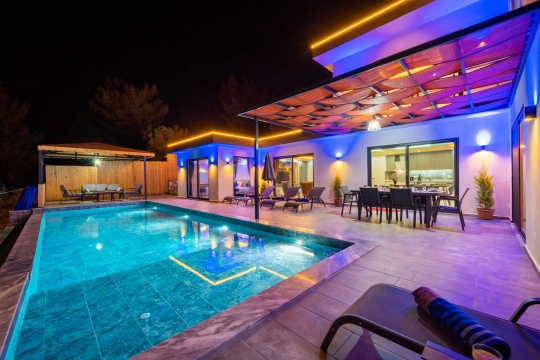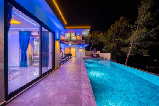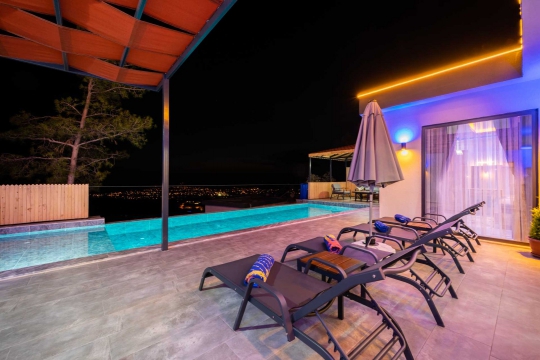 Villa Leon Üzümlü, Kalkan Üzümlü mevkiinde bulunan 3 yatak odasıyla 6 kişi konaklama kapasitesine sahiptir. Villamızda jakuzi ve sauna da mevcuttur. Ayrıca kış aylarında da rahatça konaklayabilmeniz için ısıtmalı havuzu da bulunmaktadır. Villa Leon siz değerli misafirlerimizin rahatı ve konforu için özenle tasarlanmıştır. Bütün bu olanaklarının yanında villamızın terasından deniz manzarasının keyfini çıkarabilirsiniz. Doğa içersinde yer alan villamız kalabalık arkadaş grupları ve geniş aileler için uygundur.