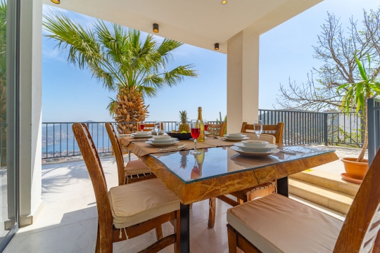 Villa Mamma Mia, Kalkan Akbel bölgesinde yer almakta olup muazzam deniz manzarasına sahiptir. Villamiz çift suit odasıyla birlikte 4 yatak odalı ve 8 kişi kapasitelidir. Geniş bahçeye ve tuzlu havuza sahip villamız plaja yalnızca 3 km uzaklıkta olup oldukça merkezi bir konuma sahiptir. Villa Mamma Mia, yemyeşil bahçesindeki oturma alanında hem manzaranın hem Güneş’in tadını doyasıya yasamanıza fırsat sunmaktadır. Geniş ailelerimiz ve kalabalık arkadaş grupları için ideal olan villamız oldukça modern ve şık dekore edilmiştir.