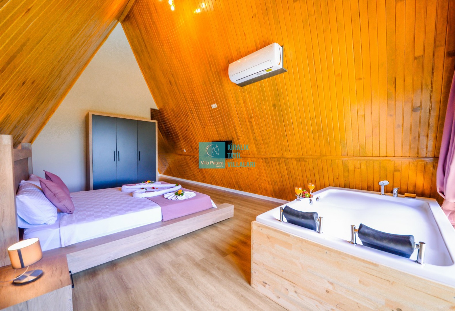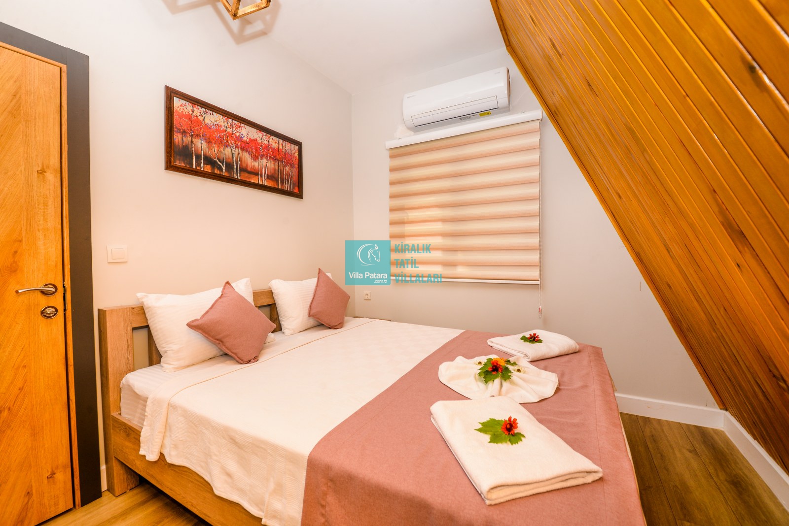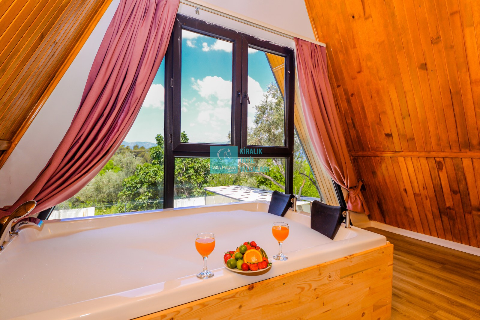 Kalkan üzümlü mevkisinde bulunan kiralık villamız, sessizliğin, huzurun hakim olduğu bir villada tatil isteyen çiftlerimiz için oldukça uygun bir seçenektir. Muhafazakar villalar ve balayı villaları kategorisinde yer alan villamız, 2 yatak odası ile 4 kişilik konaklama kapasitesine sahiptir. Havuzu korunaklı ve bahçesi dışarıdan görünmeyen villamız, mahremiyete önem veren çiftlerimiz için huzur dolu bir tatil fırsatı sunuyor. Ayrıca villamızın yatak odasında misafirlerimizin rahatlaması için 2 kişilik jakuzi konforu da sağlamaktadır.