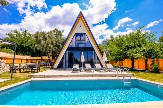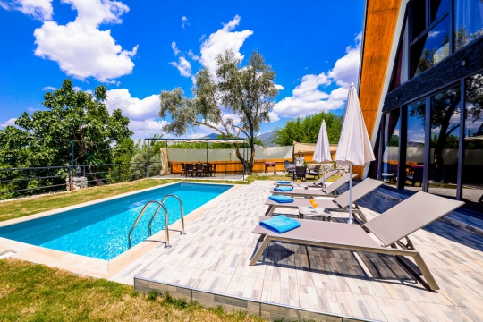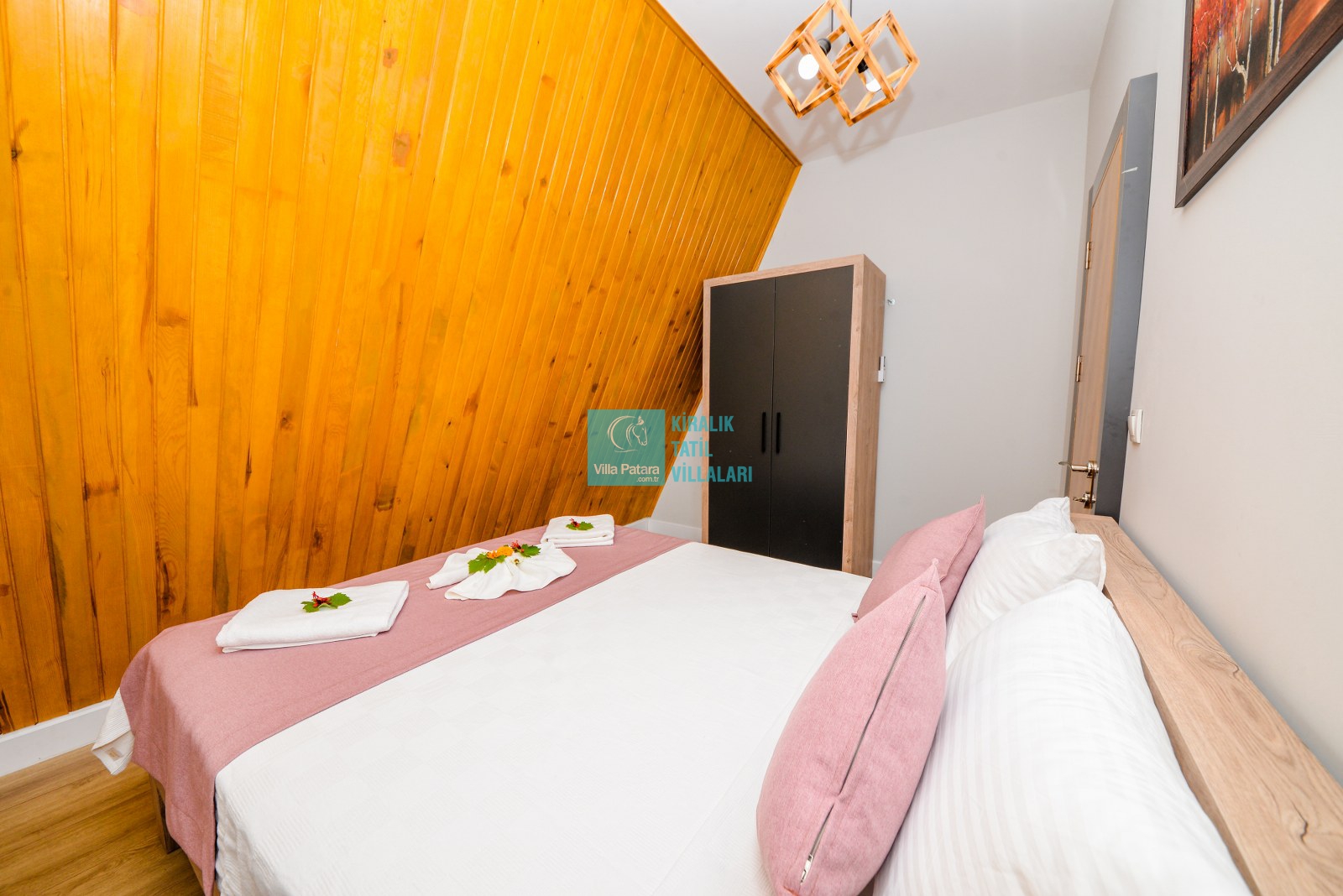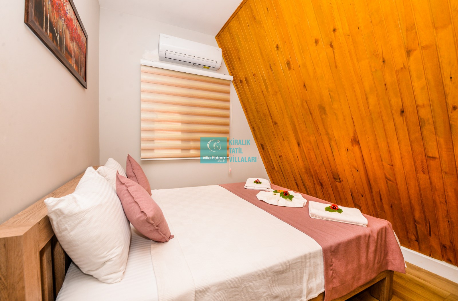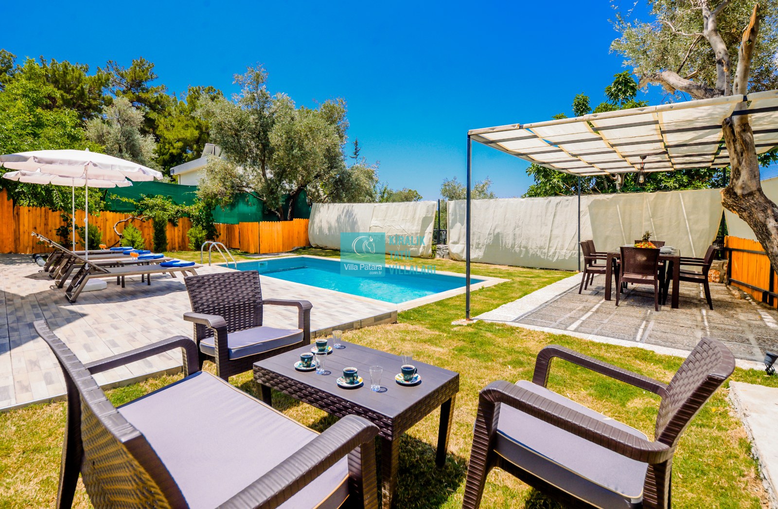 Kalkan üzümlü mevkisinde bulunan kiralık villamız, sessizliğin, huzurun hakim olduğu bir villada tatil isteyen çiftlerimiz için oldukça uygun bir seçenektir. Muhafazakar villalar ve balayı villaları kategorisinde yer alan villamız, 2 yatak odası ile 4 kişilik konaklama kapasitesine sahiptir. Havuzu korunaklı ve bahçesi dışarıdan görünmeyen villamız, mahremiyete önem veren çiftlerimiz için huzur dolu bir tatil fırsatı sunuyor. Ayrıca villamızın yatak odasında misafirlerimizin rahatlaması için 2 kişilik jakuzi konforu da sağlamaktadır.