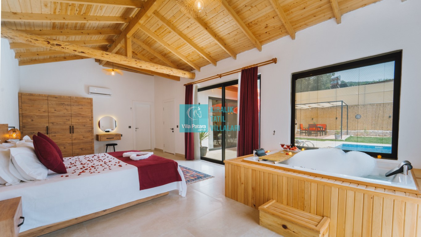 Villa Masiva 2, Kalkan Patara bölgesinde eşsiz doğa manzarasını sahip sessiz, sakin, huzurlu bir ortamda lüks ve ayrıcalıklı detaylarıyla siz değerli misafirlerimizin, beğenisine sunan yepyeni kiralık tatil villasıdır. Kiralık Villa Masiva 2, balayı villaları, jakuzili villalar, muhafazakar villalar ve doğa içerisindeki villalar kategorisinde yer alan içerisinde bulunan modern dokunuşlar sayesinde bir yandan kendinizi eşsiz güzellikte doğanın bir parçası olarak hissetmenizi sağlarken diğer yandan modern hayatın tüm konforunu da sizlere sunmaktadır. 1 yatak odalı 2 kişi konaklama olanağına sahiptir. Villa Masiva 2, geniş ve korunaklı bir havuza sahip olup vaktinizi dilediğinizce geçirebileceğiniz seçenekleri de sizlere sunmaktadır. Son derece huzurlu ve kaliteli bir tatil için Villa Masiva 2, sizleri beklemektedir.