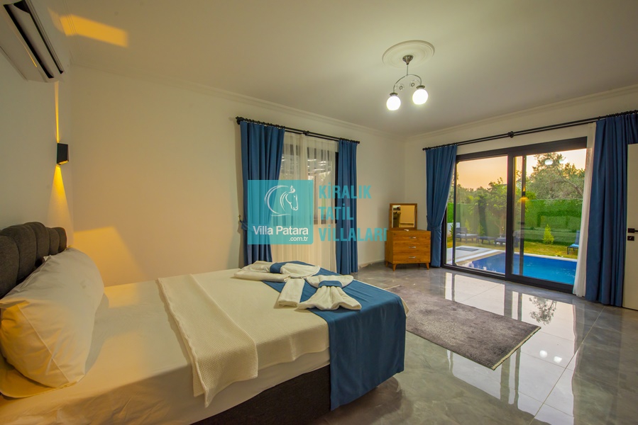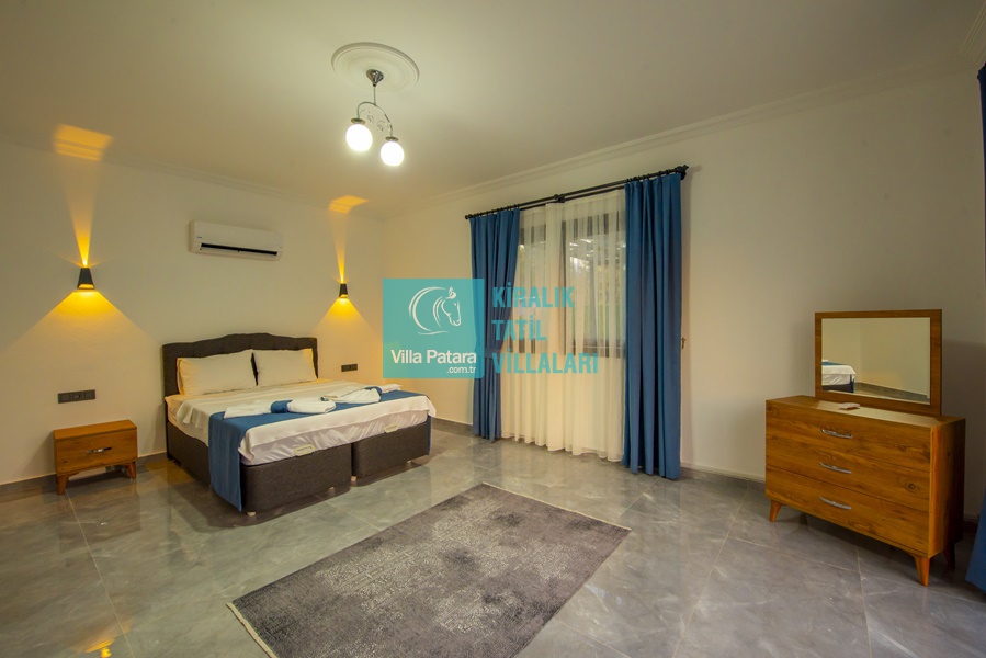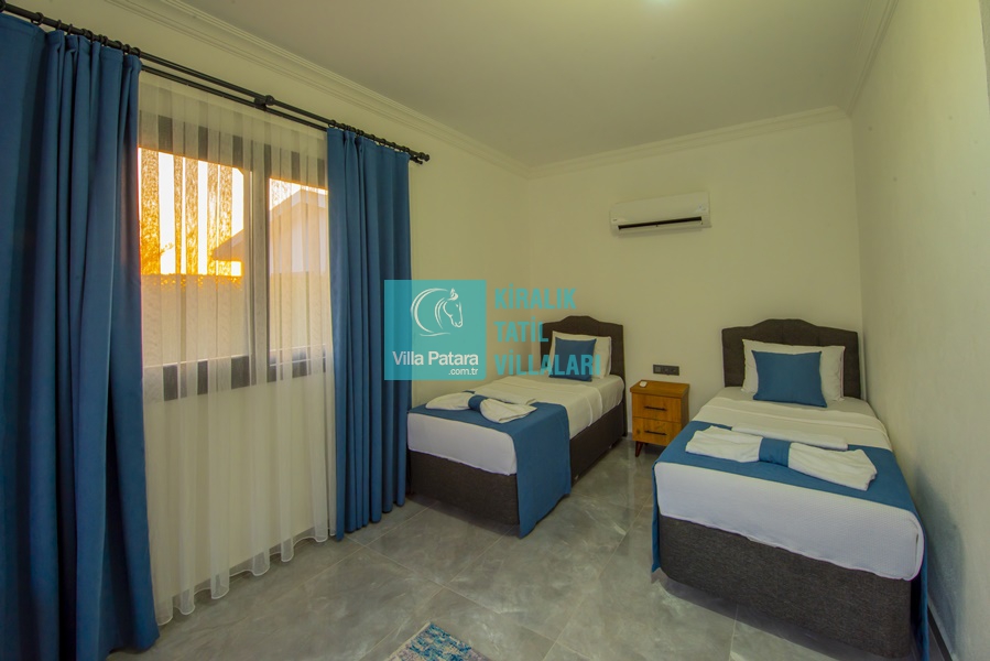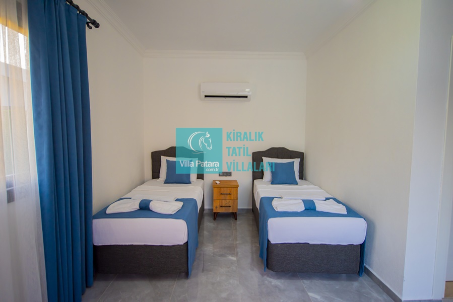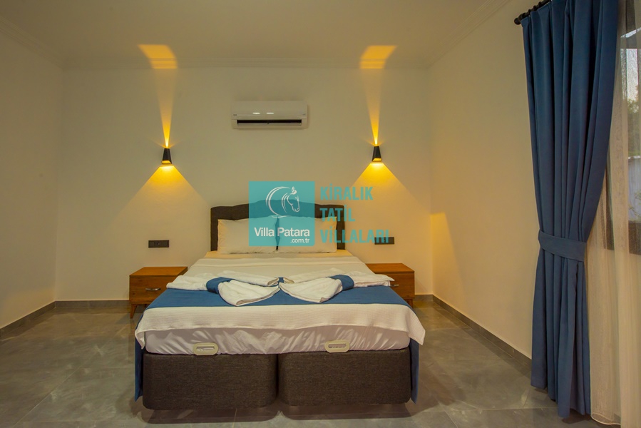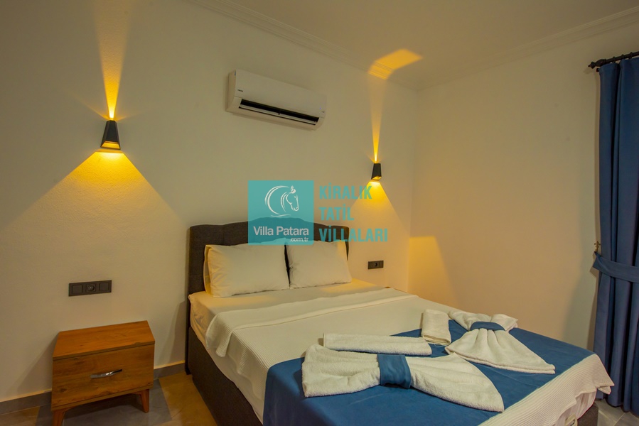 Villamız Fethiye Yeni mahalle mevkiinde yer alan Villa Mavi 1, şirin bahçeli havuzu oldukça korunaklı villamızdır. Müstakil yüzme havuzu dışarıya karşı oldukça korunaklı olduğu için tatilde gözlerden uzak olmak isteyen misafirlerimiz rahat edeceklerdir. Villa Mavi 1, 5 kişilik kapasiteye sahip villada 2 yatak odası yer alıyor. Villanın 2 banyosu mevcut. Açık mutfağı ve kendine ait bahçesinde bir havuzu var. Mutfağında bulaşık makinesi, buzdolabı, ankastre fırın, tost makinesi ve mutfakta ihtiyaç olan hemen hemen bütün gereçler bulunuyor. Barbekü, masa, sandalyeler, şezlonglar ve şemsiyeler bahçe keyfini sınırsız yaşamanıza imkan tanıyor. Salonunda oturma grubu, televizyon, eşyalar bulunurken, tüm odalar için ayrı klima imkanı var.