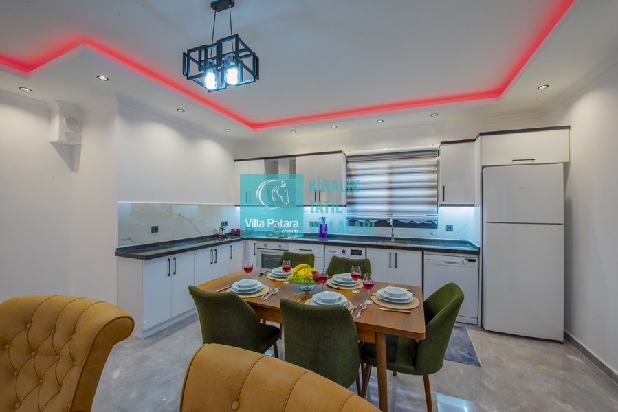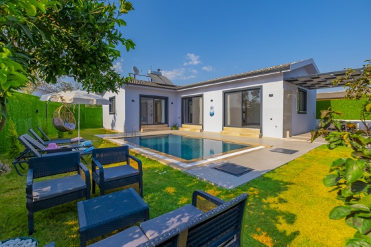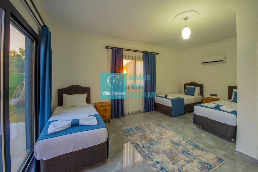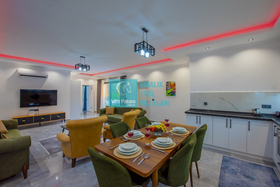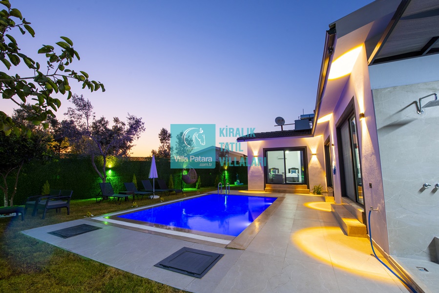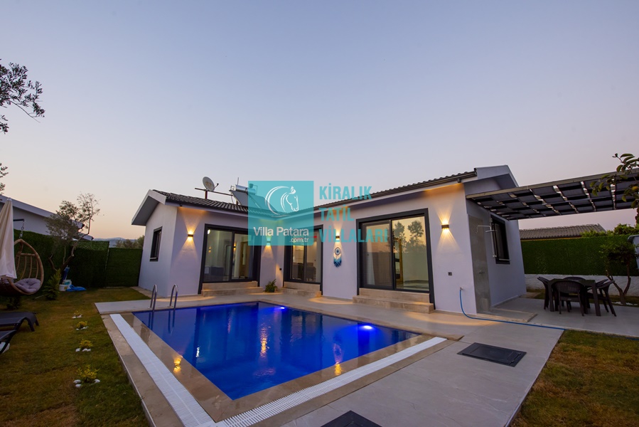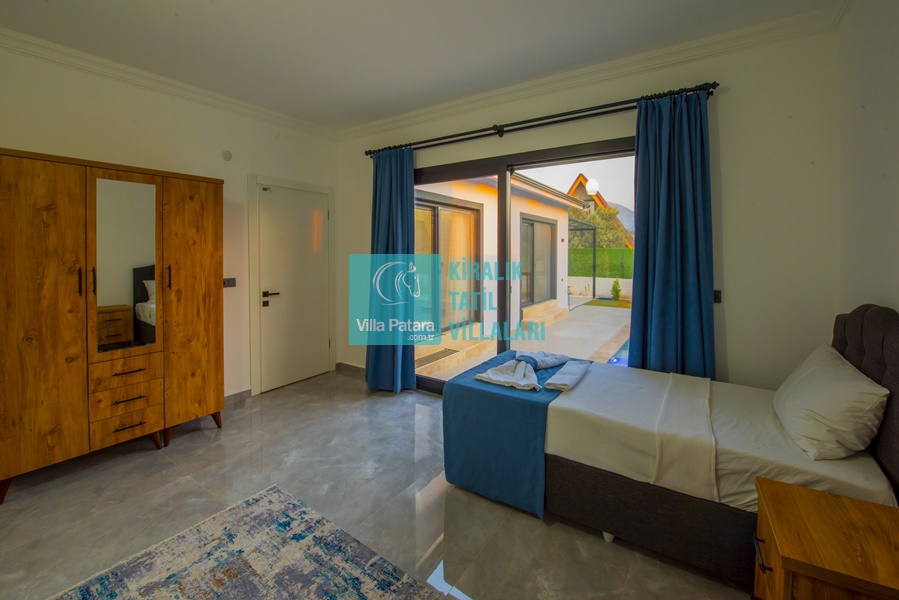 Villamız Fethiye Yeni mahalle mevkiinde yer alan Villa Mavi 1, şirin bahçeli havuzu oldukça korunaklı villamızdır. Müstakil yüzme havuzu dışarıya karşı oldukça korunaklı olduğu için tatilde gözlerden uzak olmak isteyen misafirlerimiz rahat edeceklerdir. Villa Mavi 1, 5 kişilik kapasiteye sahip villada 2 yatak odası yer alıyor. Villanın 2 banyosu mevcut. Açık mutfağı ve kendine ait bahçesinde bir havuzu var. Mutfağında bulaşık makinesi, buzdolabı, ankastre fırın, tost makinesi ve mutfakta ihtiyaç olan hemen hemen bütün gereçler bulunuyor. Barbekü, masa, sandalyeler, şezlonglar ve şemsiyeler bahçe keyfini sınırsız yaşamanıza imkan tanıyor. Salonunda oturma grubu, televizyon, eşyalar bulunurken, tüm odalar için ayrı klima imkanı var.