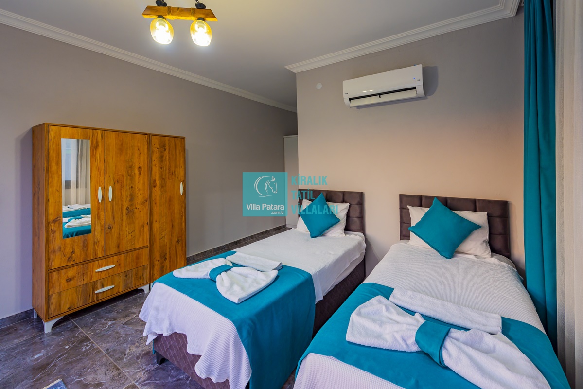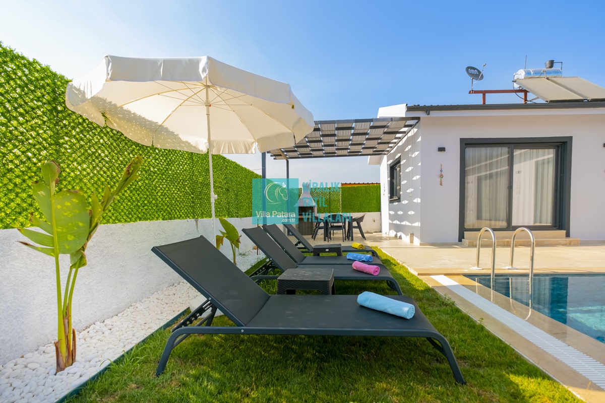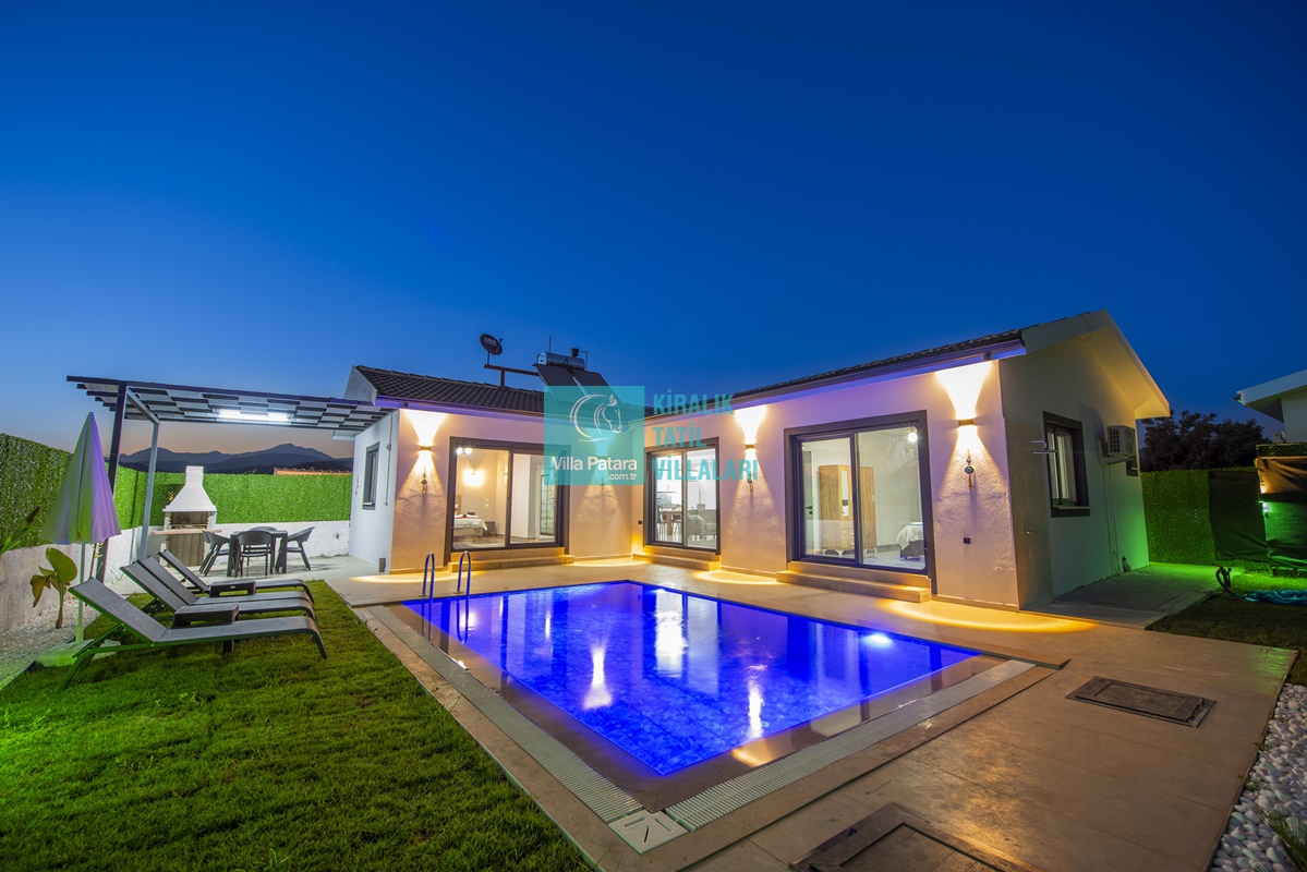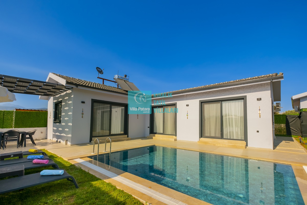 Villamız Fethiye Yeni mahalle mevkiinde yer alan Villa Mavi 2, şirin bahçeli havuzu oldukça korunaklı villamızdır. Müstakil yüzme havuzu dışarıya karşı oldukça korunaklı olduğu için tatilde gözlerden uzak olmak isteyen misafirlerimiz rahat edeceklerdir. Villa Mavi 2, 4 kişilik kapasiteye sahip villada 2 yatak odası yer alıyor. Villanın 2 banyosu mevcut. Açık mutfağı ve kendine ait bahçesinde bir havuzu var. Mutfağında bulaşık makinesi, buzdolabı, ankastre fırın, tost makinesi ve mutfakta ihtiyaç olan hemen hemen bütün gereçler bulunuyor. Barbekü, masa, sandalyeler, şezlonglar ve şemsiyeler bahçe keyfini sınırsız yaşamanıza imkan tanıyor. Salonunda oturma grubu, televizyon, eşyalar bulunurken, tüm odalar için ayrı klima imkanı var.
