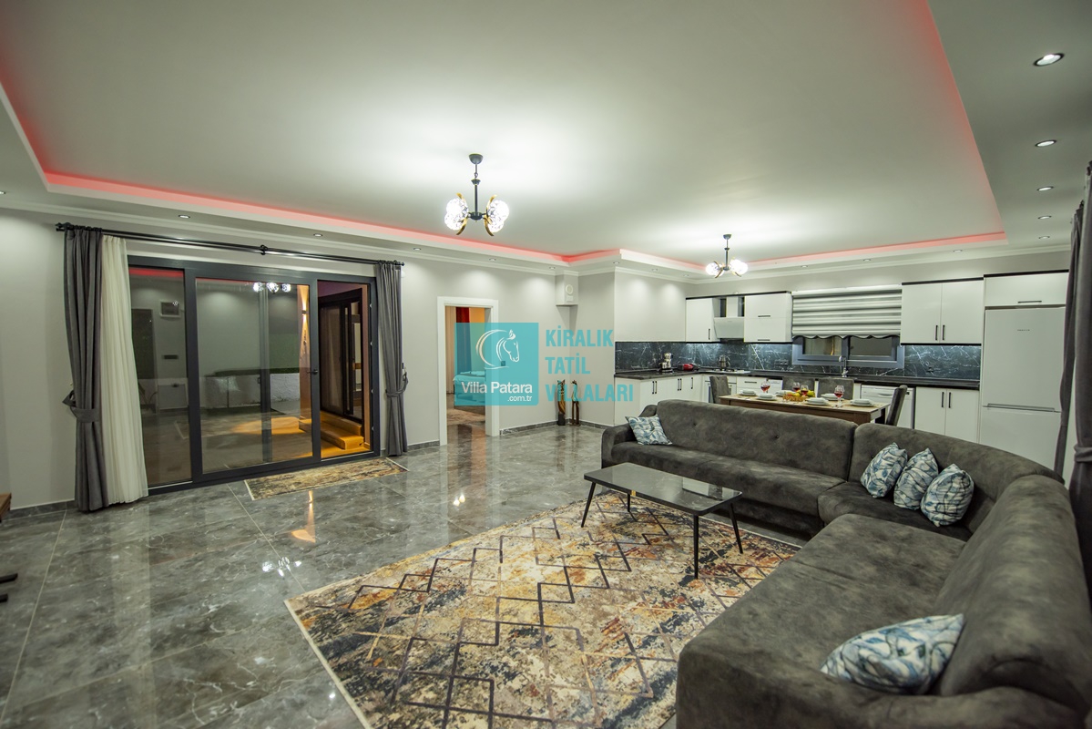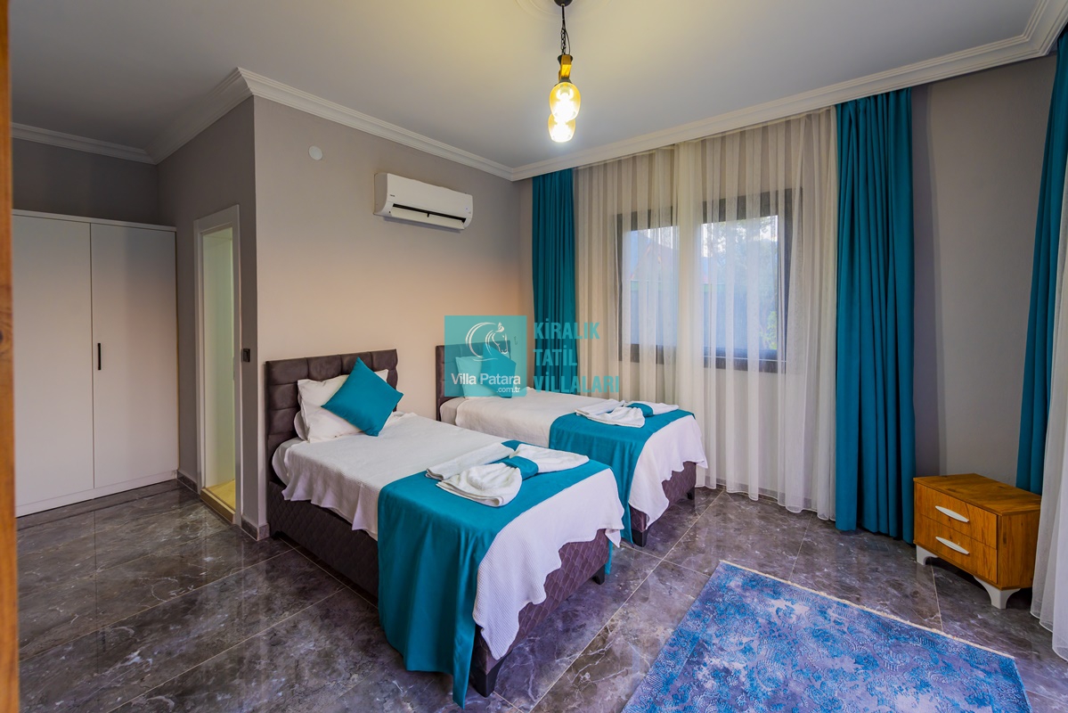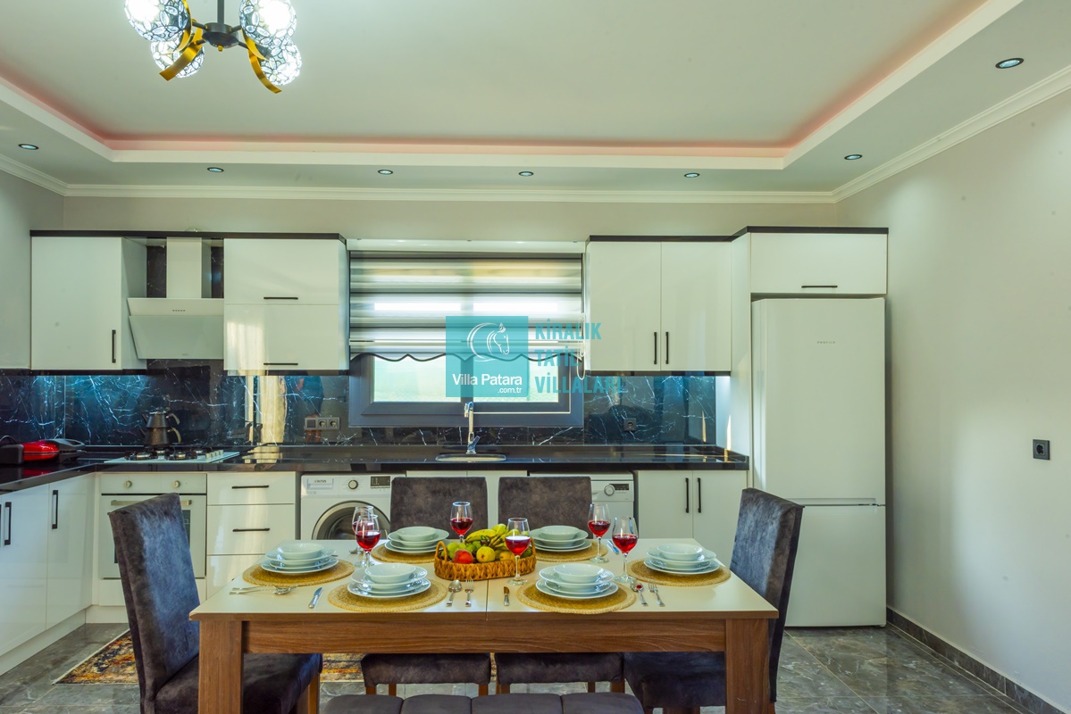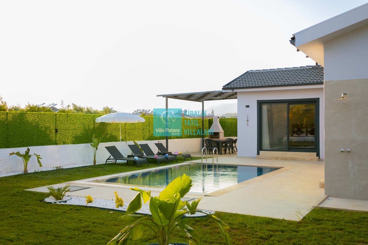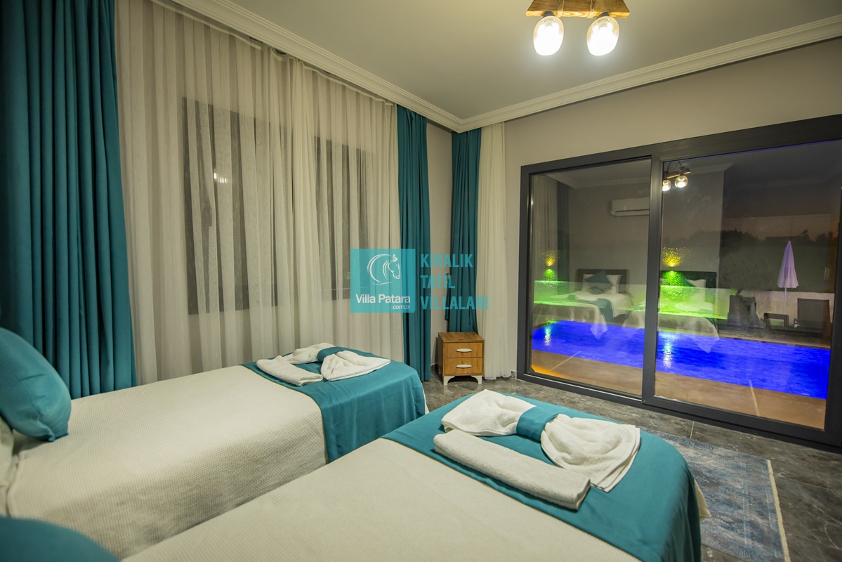 Villamız Fethiye Yeni mahalle mevkiinde yer alan Villa Mavi 2, şirin bahçeli havuzu oldukça korunaklı villamızdır. Müstakil yüzme havuzu dışarıya karşı oldukça korunaklı olduğu için tatilde gözlerden uzak olmak isteyen misafirlerimiz rahat edeceklerdir. Villa Mavi 2, 4 kişilik kapasiteye sahip villada 2 yatak odası yer alıyor. Villanın 2 banyosu mevcut. Açık mutfağı ve kendine ait bahçesinde bir havuzu var. Mutfağında bulaşık makinesi, buzdolabı, ankastre fırın, tost makinesi ve mutfakta ihtiyaç olan hemen hemen bütün gereçler bulunuyor. Barbekü, masa, sandalyeler, şezlonglar ve şemsiyeler bahçe keyfini sınırsız yaşamanıza imkan tanıyor. Salonunda oturma grubu, televizyon, eşyalar bulunurken, tüm odalar için ayrı klima imkanı var.