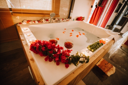 En suit,1 adet çift kişilik yatak, komidin. klima, banyo, jakuz