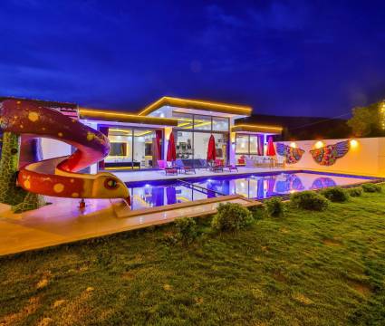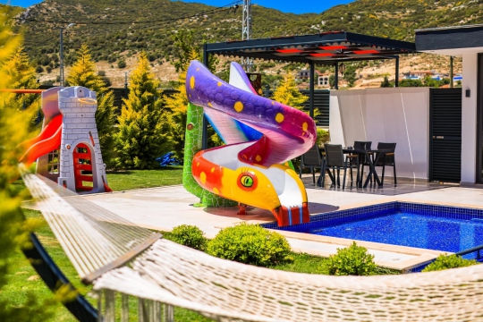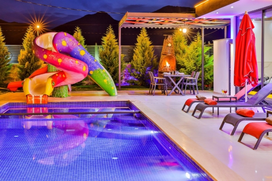 Kalkan Sarıbelen Bölgesinde doğa içinde bulunan villamız 2 yatak odalı olup 5 kişi kapasitelidir. Villamızın havuzu korunaklı yani muhafazakar haldedir. Villamızın yatak odasında jakuzi ve havuz ile bitişik çocuk havuzu bulunmaktadır. Villamız balayı çiftleri ve küçük aileler için harika bir tatil imkanı sunar.