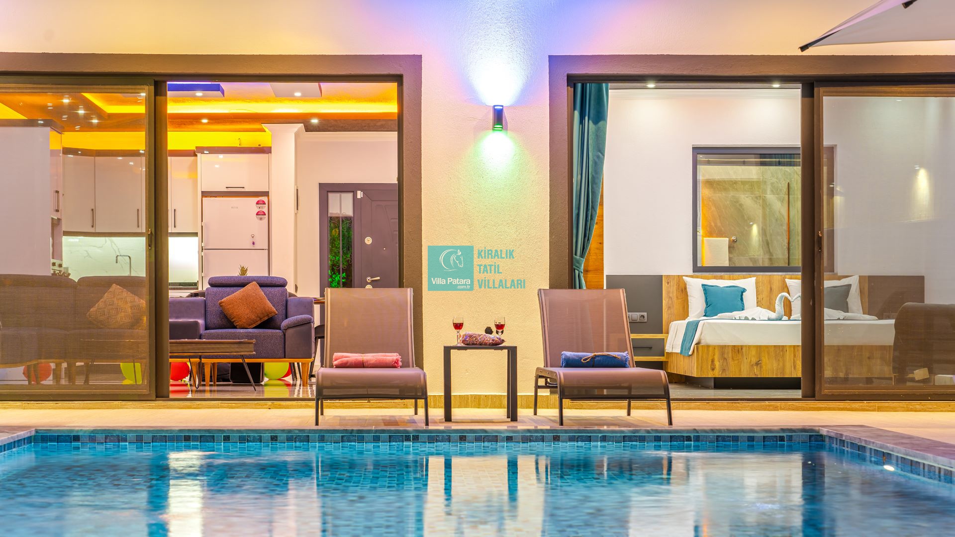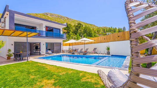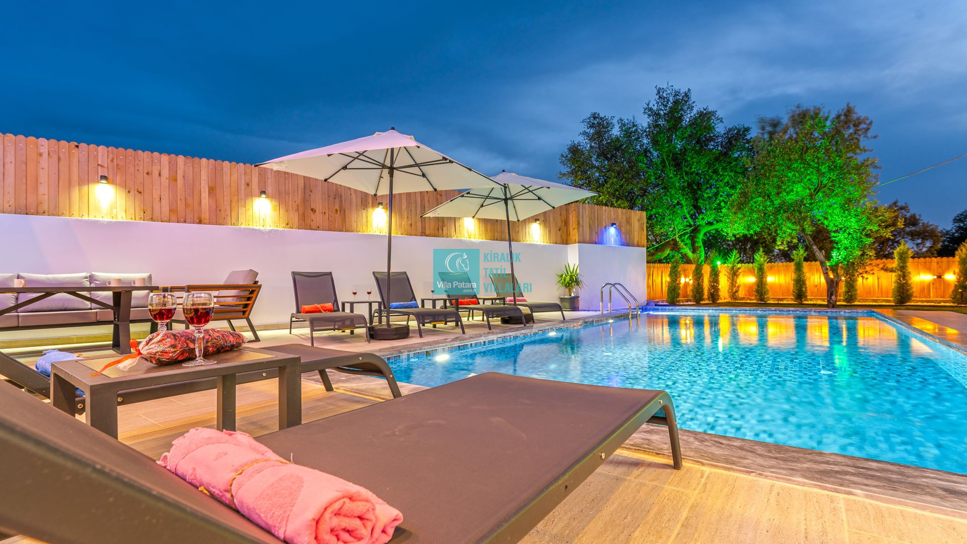 Doğa manzaralı kiralık villa Mert Üzümlü tam da ihtiyaçlarınıza cevap verecek geniş alanlara sahiptir. Villada 3 yatak odası ve 3 adet banyo vardır. Özellikle kalabalık aileler için kiralık villa düşüncesi ile hazırlandığından dolayı villada herkese yetecek kadar alan bulunmaktadır. Villa Mert Üzümlü deniz ve plaja 8 km uzaklıktadır. Ancak kendine ait geniş ve ferah havuzu aynı zamanda bahçesi mevcuttur. Burada gün içinde ve tatiliniz süresince dilediğiniz gibi dinlenebilir, eğlenebilir, yüzebilir ve keyfinize bakabilirsiniz. Aynı zamanda muhafazakar kiralık villa olarak hazırlanan Mert Üzümlü’de muhafazakar tatil de yapabileceğinizi belirtmek isteriz. Tatil villası dendiğinde bundan sonra aklınıza hiç kuşkusuz Mert Üzümlü gelecektir.