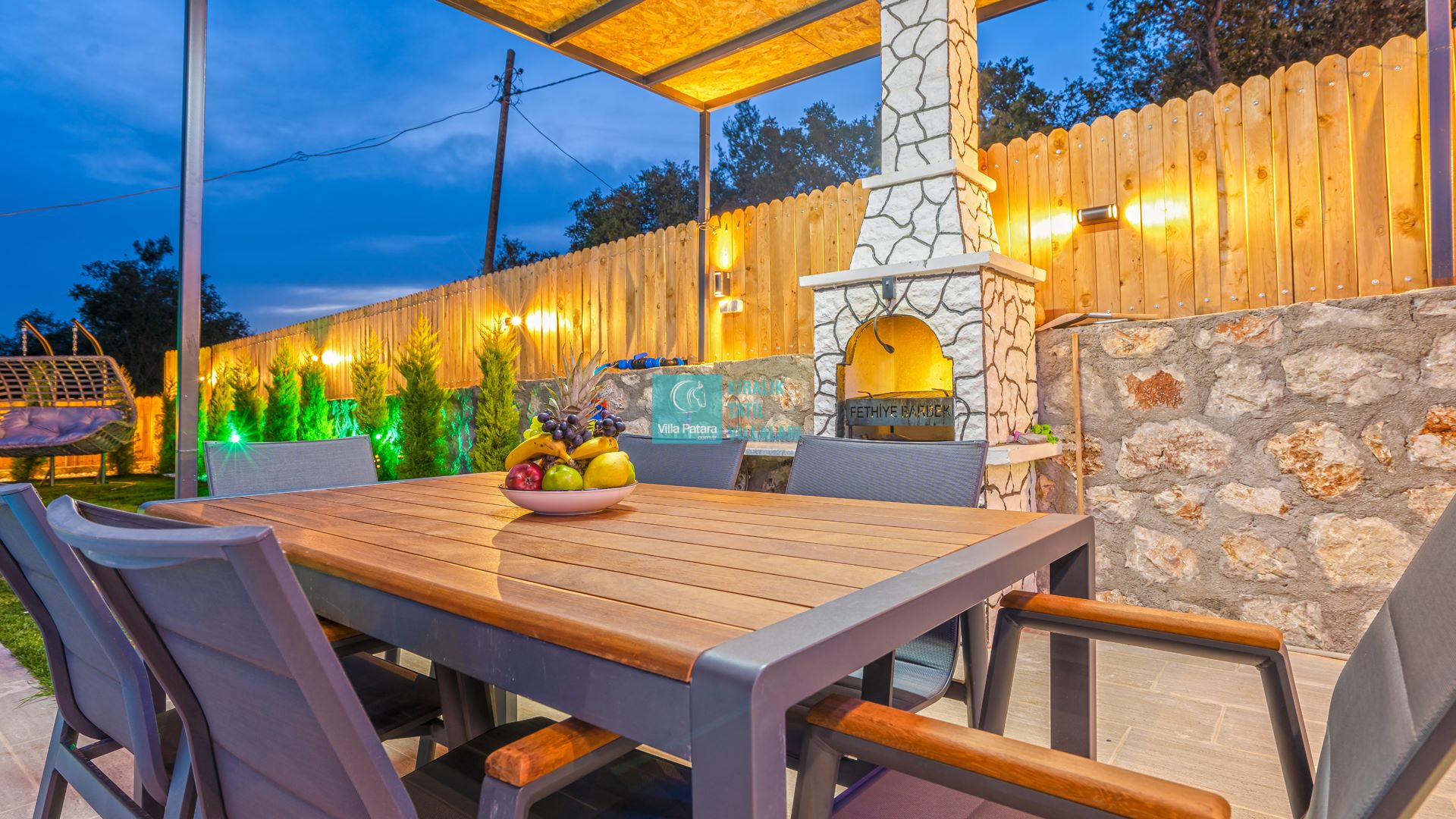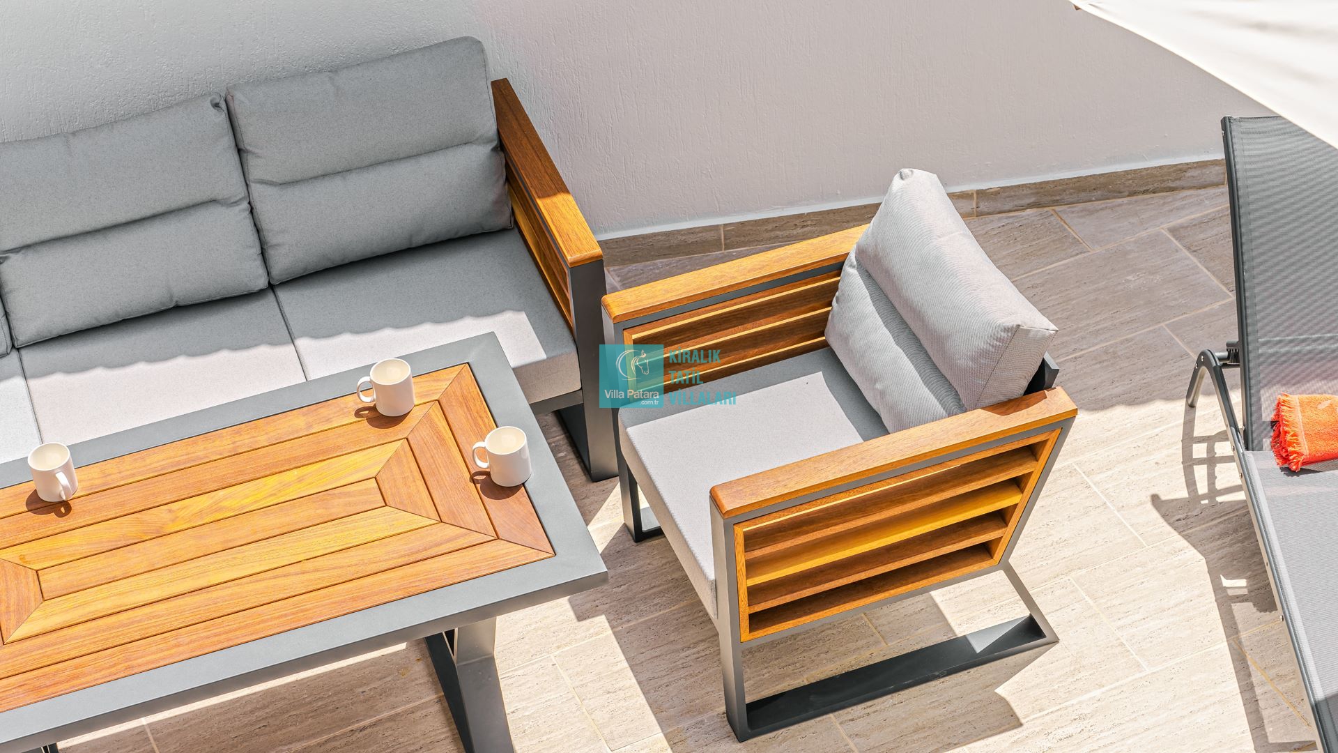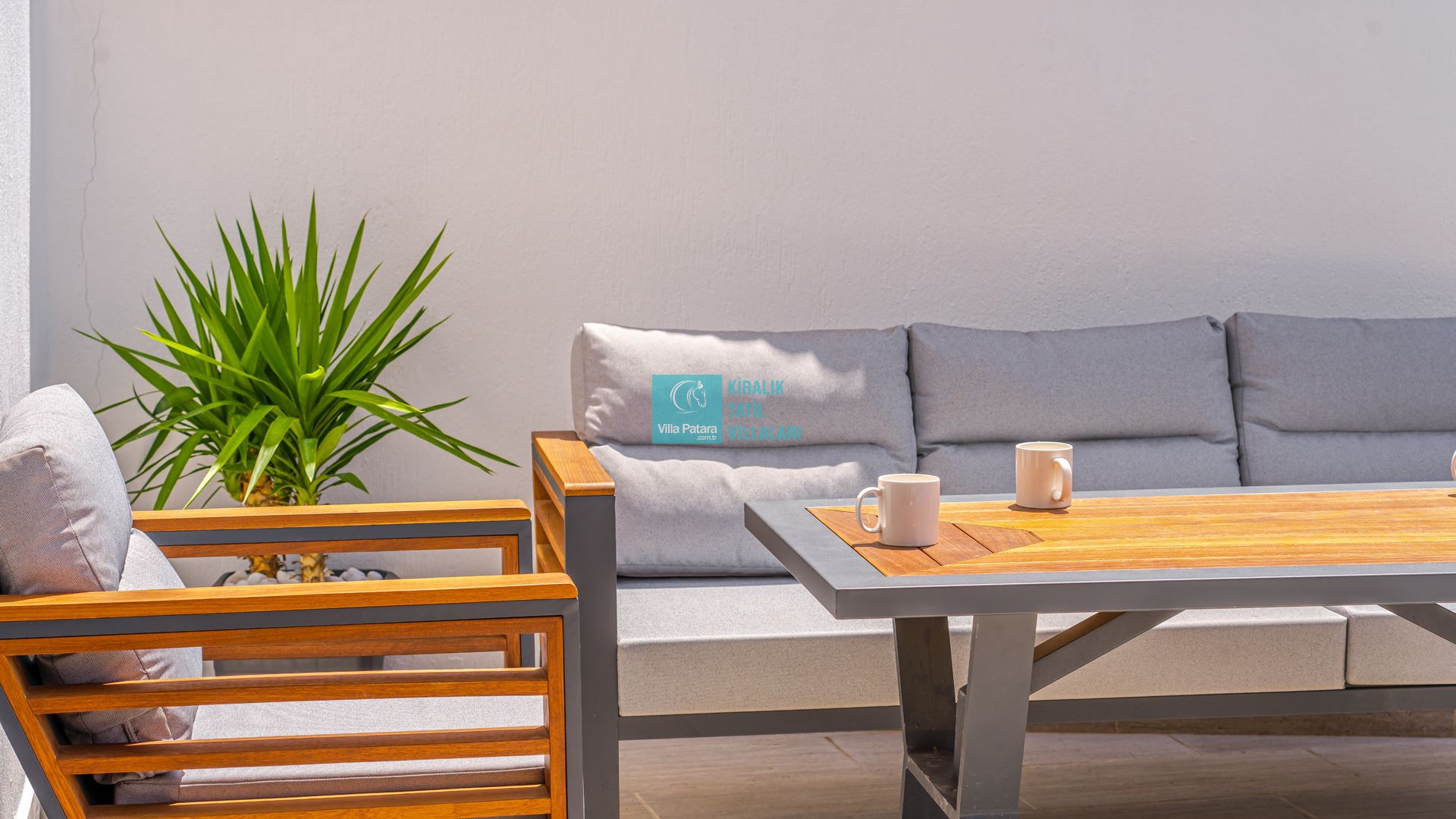 Detayları: Şezlong , güneşlenme şemsiyesi, barbekü, yemek masası ve sandalyeleri bulunmaktadır.