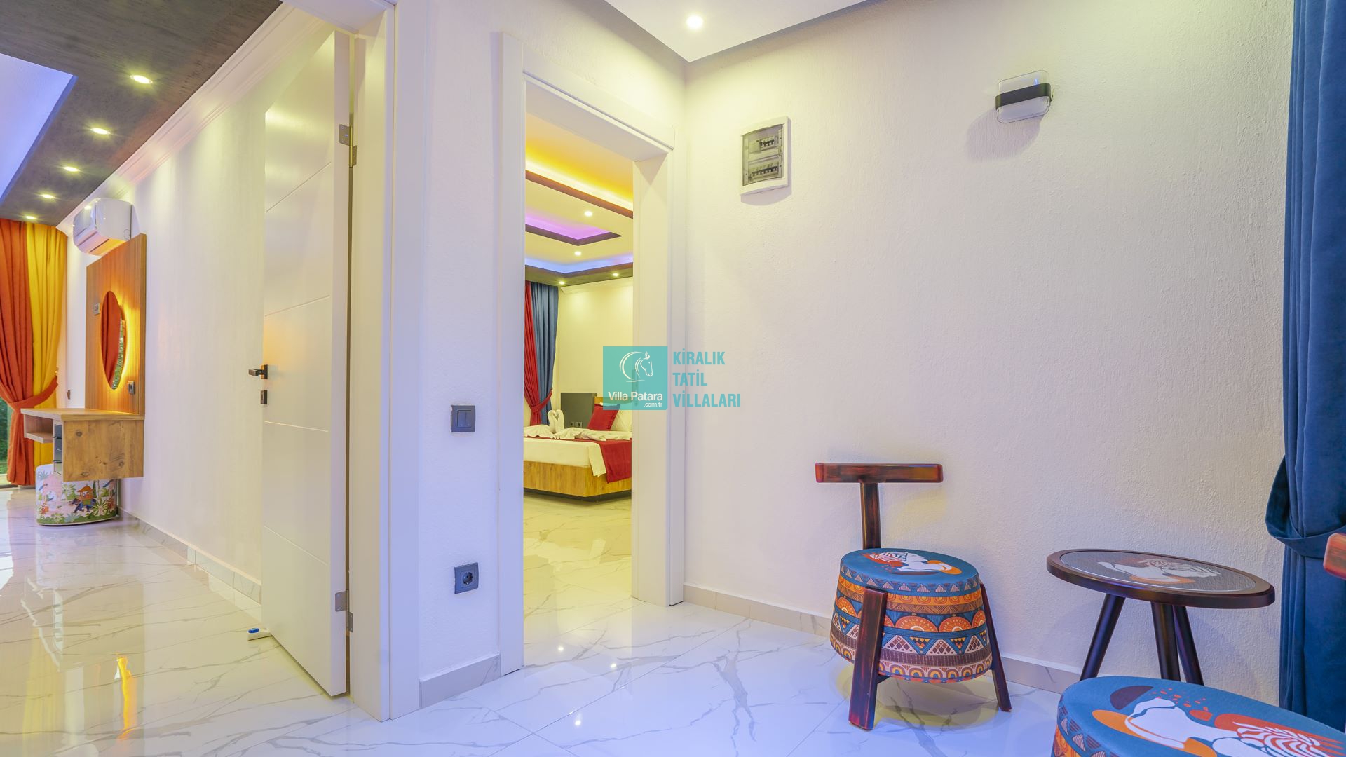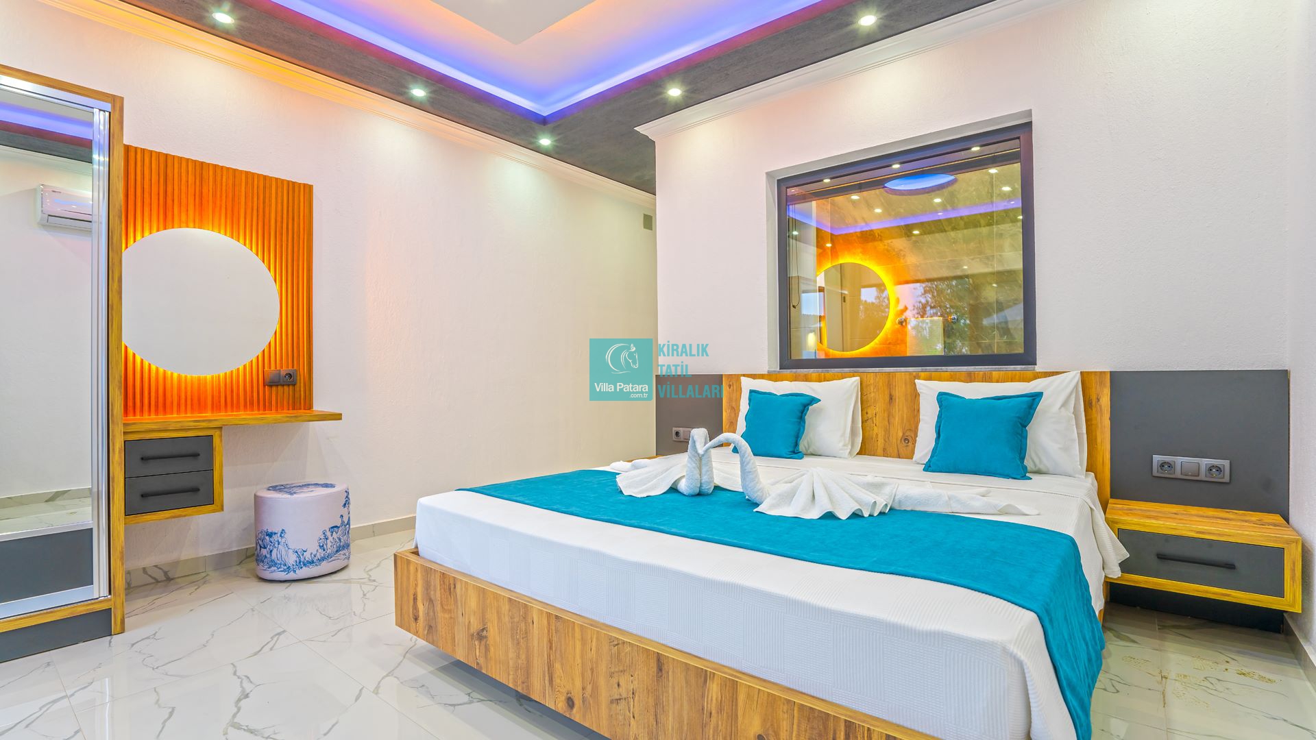 Detayları: Çift kişilik yatak , klima, televizyon, komidin, elbise dolabı, makyaj masası, banyo ve lavabo bulunmaktadır.