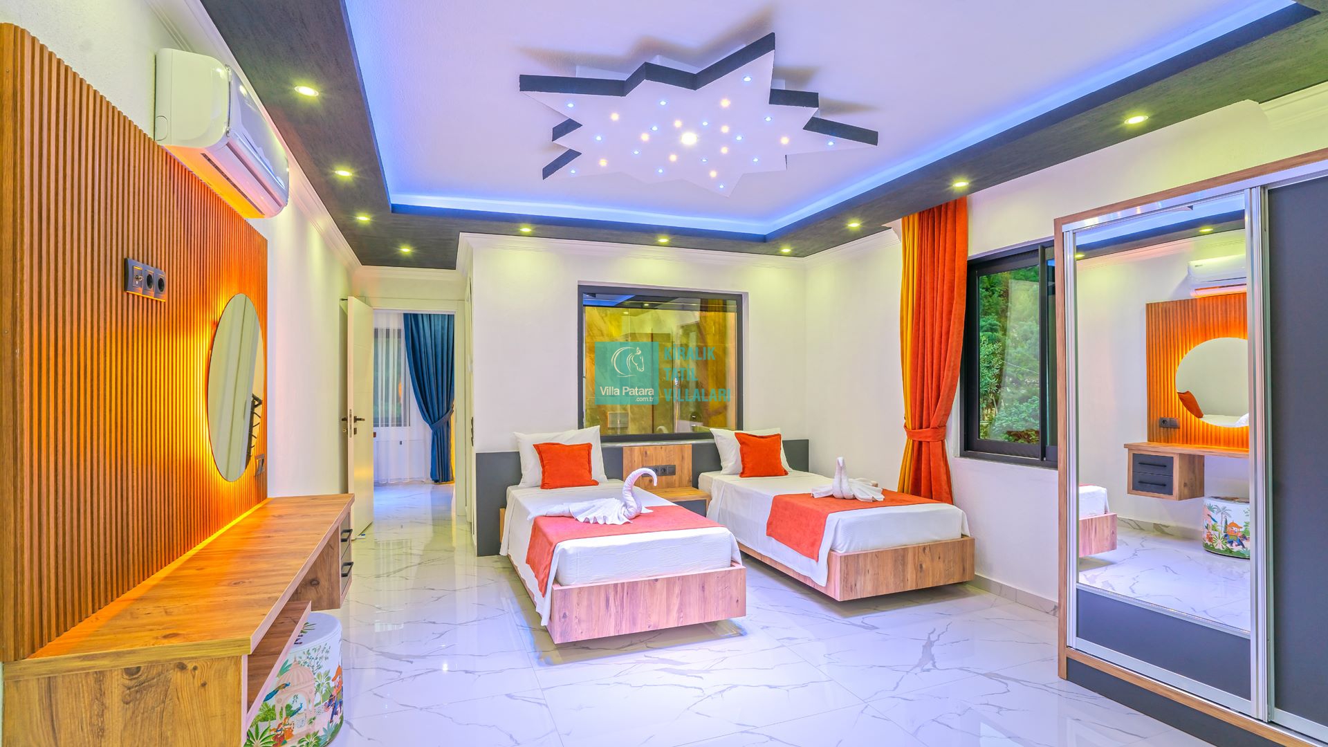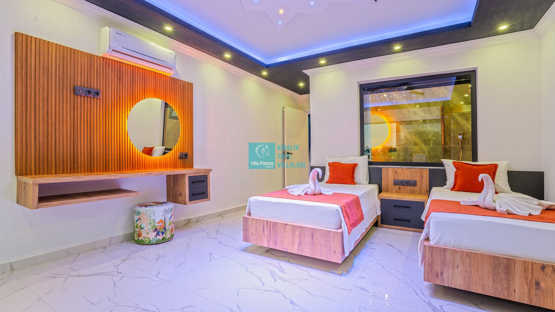 Detayları: 2 adet tek kişilik yatak, elbise dolabı, televizyon, komidin, makyaj masası, klima , banyo ve lavabo bulunmaktadır.