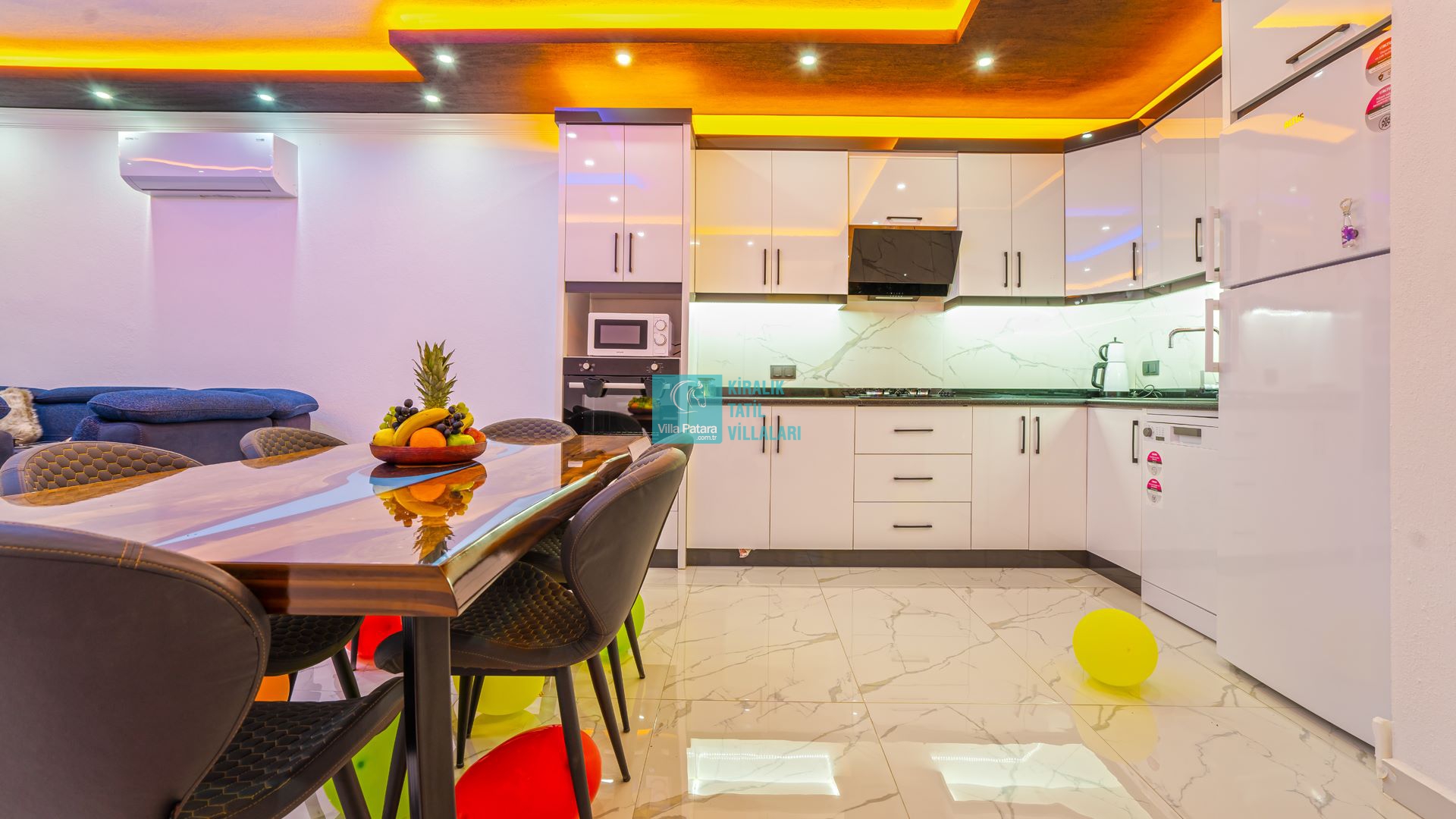Mutfak Detayları: Buzdolabı, bulaşık makinesi, fırın, çamaşır makinesi, yemek takımı, tava-tencere, çatal-bıçak seti bulunmaktadır.