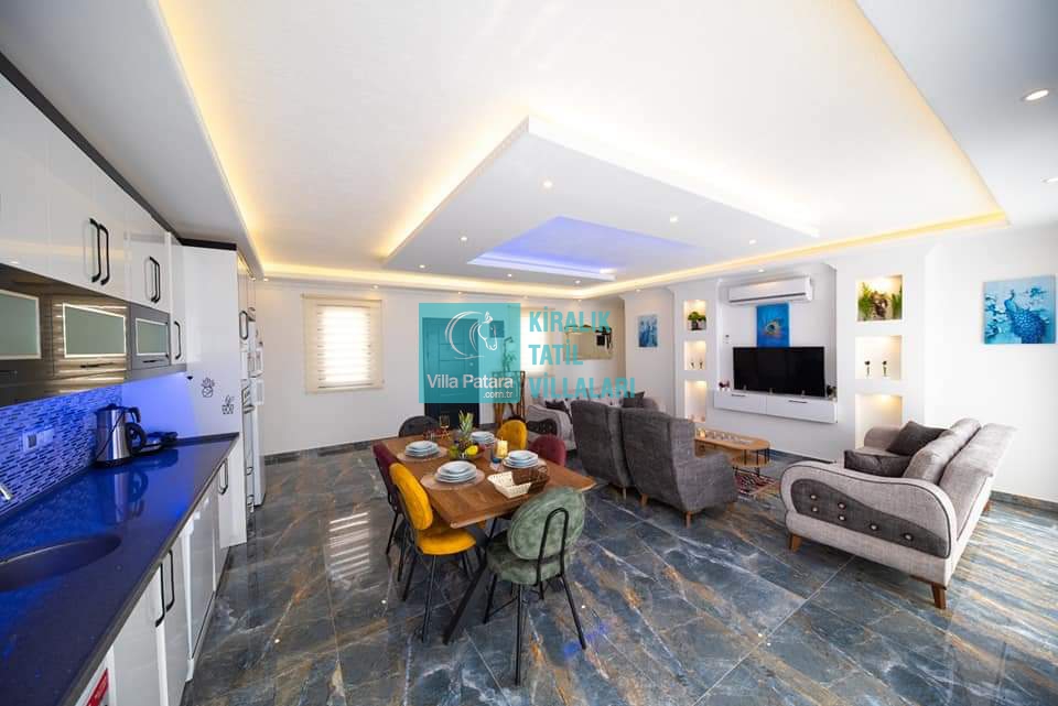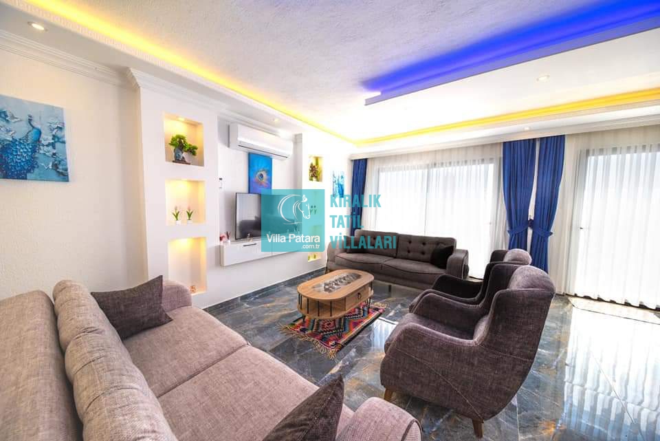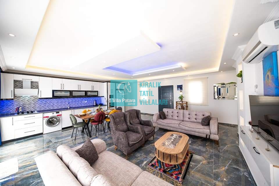 Salon: Oturma grubu, klima, televizyon, internet, uydu alıcı, yemek masası, sehpa bulunmaktadır.