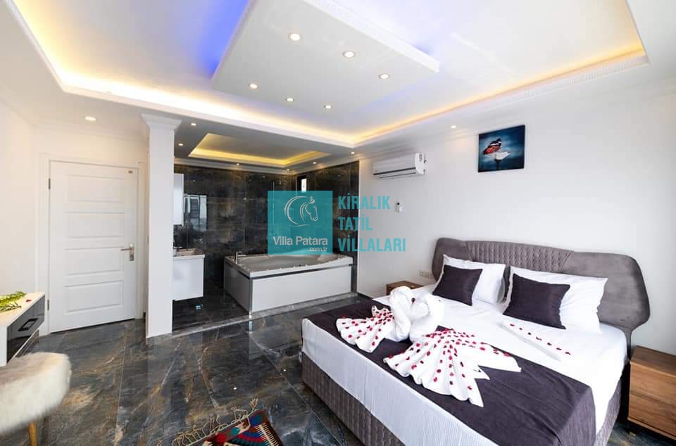 1: Yatak Odası: Çift kişilik yatak, klima, jakuzi, komodin, elbise dolabı, makyaj masası banyo ve tuvalet bulunmaktadır.