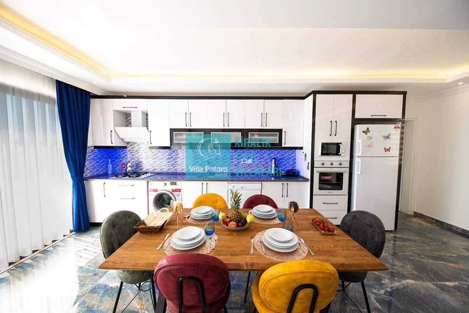 Mutfak: Buzdolabı bulaşık makinesi, çamaşır makinesi, 4 lü ocak, kettle, 4 kişilik yemek takımı bulunmaktadır.