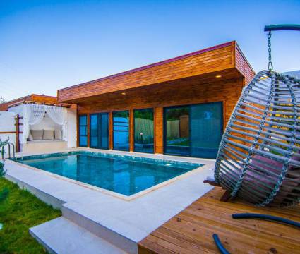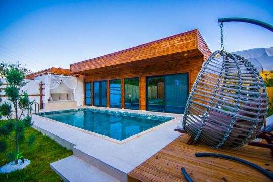 Havuz bahçe kısmı oldukça geniş olan villada, sıkılmadan uzun süre vakit geçirecek, sakinliğin keyfini sürebileceksiniz. Yemyeşil bahçesinde yer alan konforlu oturma grupları, oldukça modern locası ve salıncağı ile kapasiteye uygun şezlong takımıyla, villanın iç mekanı da dış mekanı kadar konforlu ve ferah bir yaşam alanı sunmaktadır. Kendi evinizi aratmayacak tüm araç gereçlere sahip olan villada, herhangi bir şeyin eksikliğini hissetmeniz söz konusu dahi olmayacak.