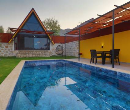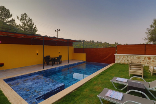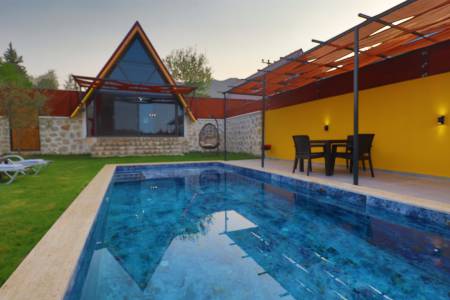 Antalya Kaş Kalkan Üzümlü mahallesinde konumlu Villa Meşkhane; 2 kişilik, jakuzili, korunaklı havuzlu tatil villasıdır.