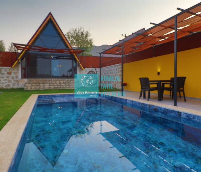 Yatak odasının bulunduğu asma katta jakuzi de bulunan villamızın havuz alanı korunaklıdır.