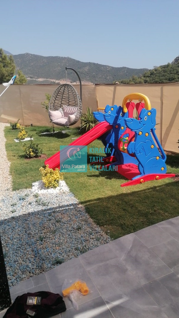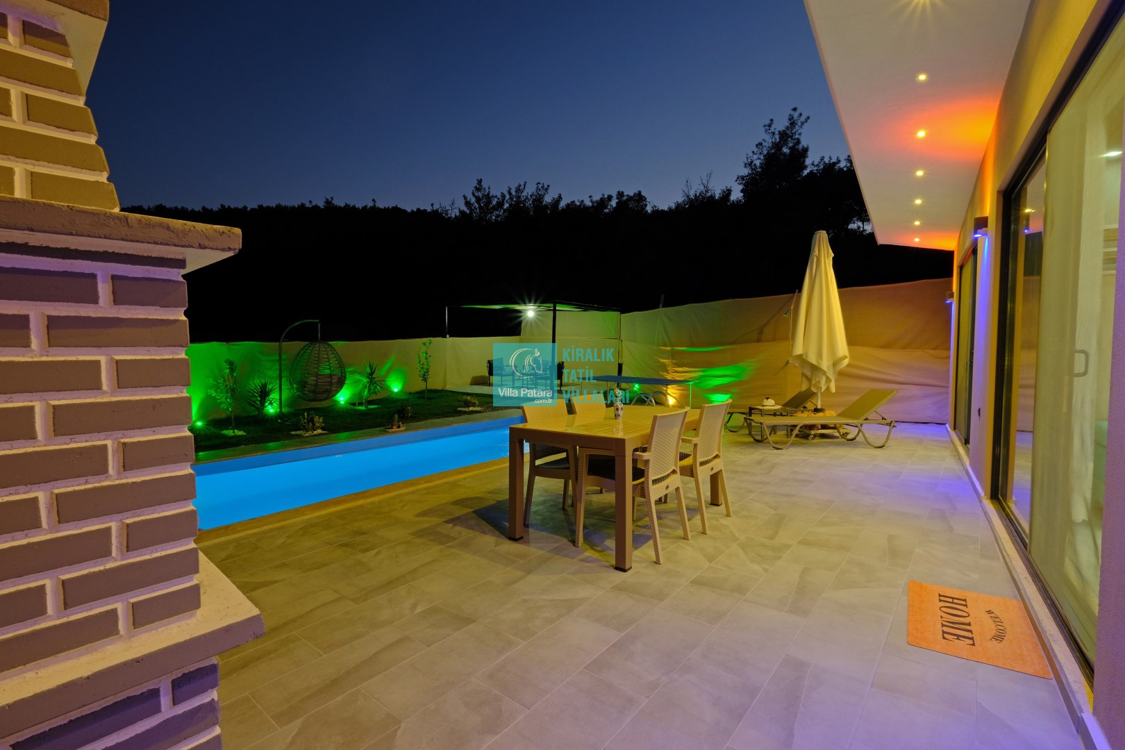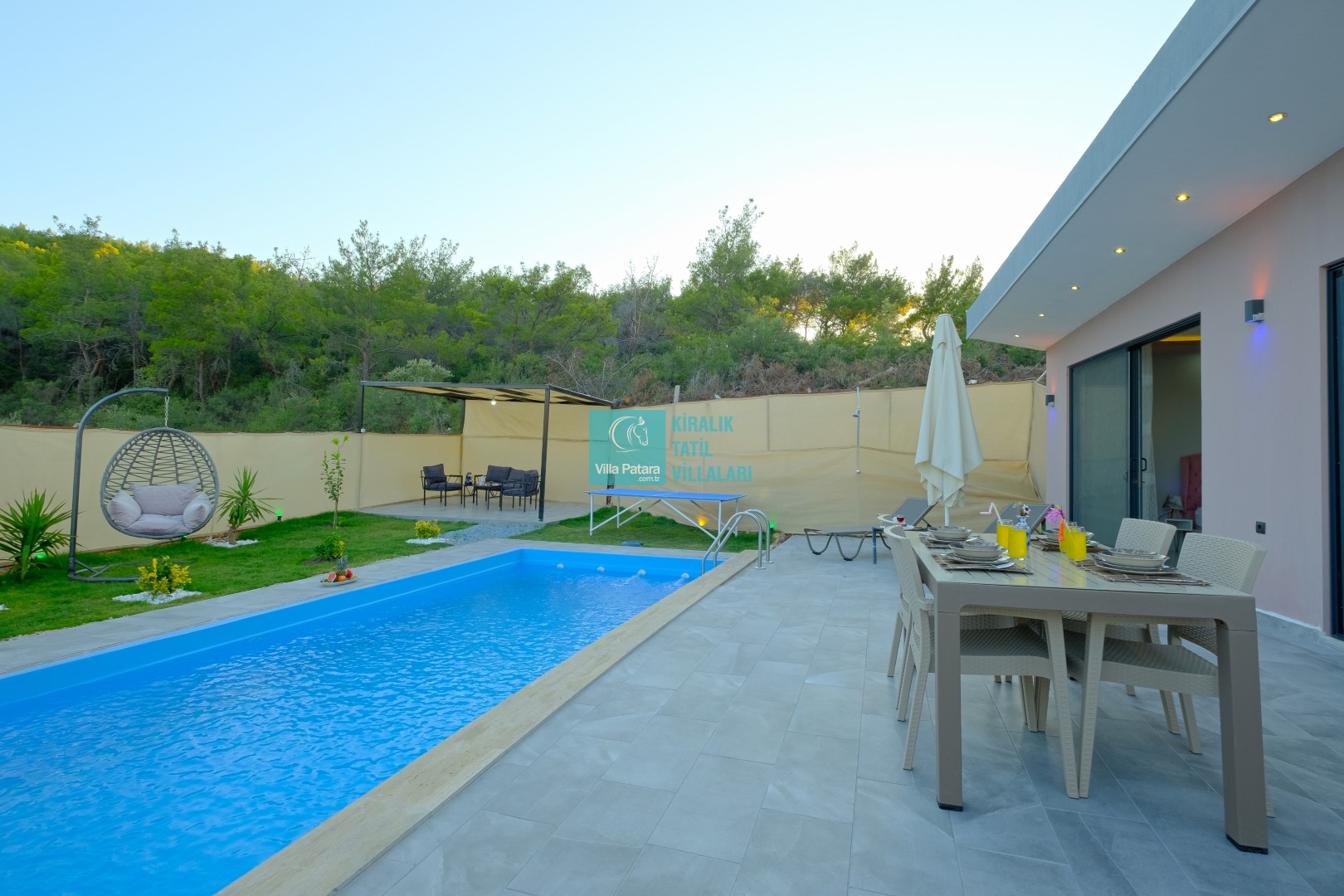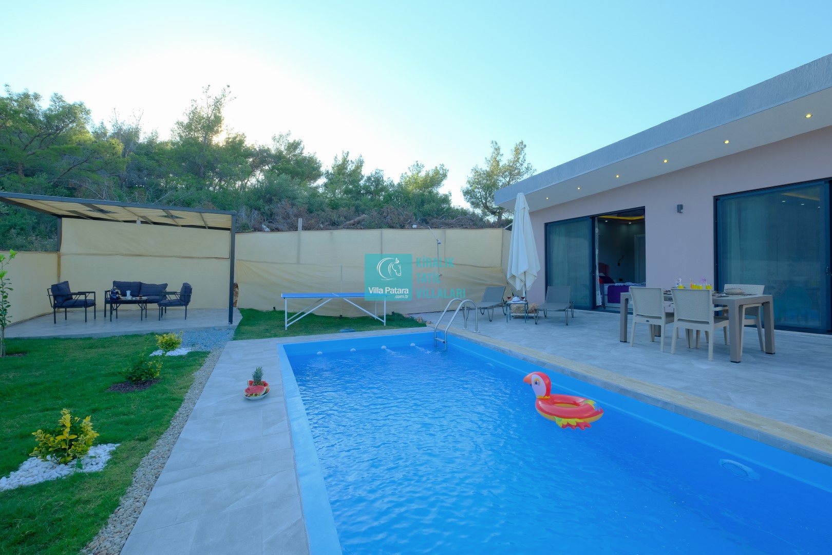 Villa Miray Yeşilköy, Kalkan ile Patara bölgeleri arasında Yeşilköy mevkinde yer alan, 2 yatak odalı 4 kişi kapasiteli, geniş bahçe alanına sahip aktiviteli villamız. Özenli lüks dekoru, düşünülmüş ince dokunuşları ve dizaynı villa tatilinizi keyiflendirecek ve siz değerli misafirlerimizde tatilinizin hiç bitmemesi isteğini uyandıracaktır. Villamız doğa içinde olup havuz ve bahçe kısmı korunaklıdır, havuz keyfini rahatça çıkarmanızı sağlar ve villamızda bulunan korunaklı havuz sayesinde ruhunuzu ve bedeninizi dinlendirme fırsatı bulacaksınız. Modern dizayna sahip olan villamız bulunduğu konum itibari ile ulaşım gerektiren bölgelere yakındır. Geniş bahçe alanına sahipolup masa tenisi, çocuk parkı, salıncak gibi aktivitesi ile çocuklu aileler için ideal villa seçeneklerinden biridir. Ailenizle veya arkadaş gruplarınızla güzel bir tatil geçirmeniz için özenle dizayn edilmiş villamıza siz değerli misafirlerimizi beklemekteyiz.