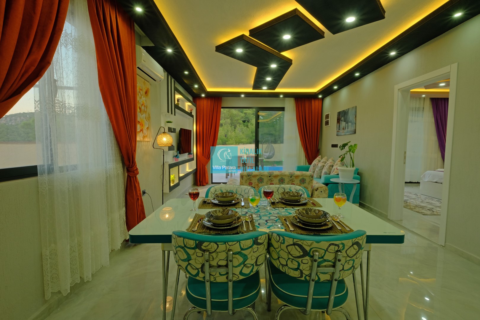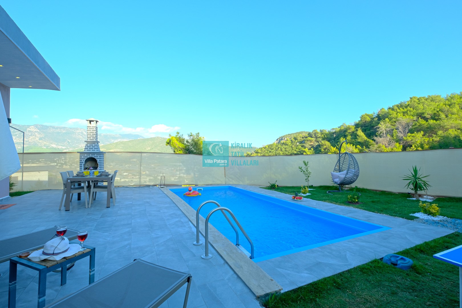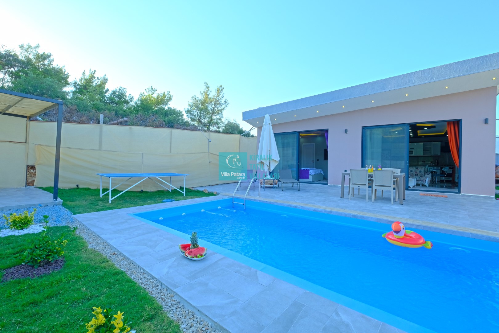 Villa Miray Yeşilköy, Kalkan ile Patara bölgeleri arasında Yeşilköy mevkinde yer alan, 2 yatak odalı 4 kişi kapasiteli, geniş bahçe alanına sahip aktiviteli villamız. Özenli lüks dekoru, düşünülmüş ince dokunuşları ve dizaynı villa tatilinizi keyiflendirecek ve siz değerli misafirlerimizde tatilinizin hiç bitmemesi isteğini uyandıracaktır. Villamız doğa içinde olup havuz ve bahçe kısmı korunaklıdır, havuz keyfini rahatça çıkarmanızı sağlar ve villamızda bulunan korunaklı havuz sayesinde ruhunuzu ve bedeninizi dinlendirme fırsatı bulacaksınız. Modern dizayna sahip olan villamız bulunduğu konum itibari ile ulaşım gerektiren bölgelere yakındır. Geniş bahçe alanına sahipolup masa tenisi, çocuk parkı, salıncak gibi aktivitesi ile çocuklu aileler için ideal villa seçeneklerinden biridir. Ailenizle veya arkadaş gruplarınızla güzel bir tatil geçirmeniz için özenle dizayn edilmiş villamıza siz değerli misafirlerimizi beklemekteyiz.