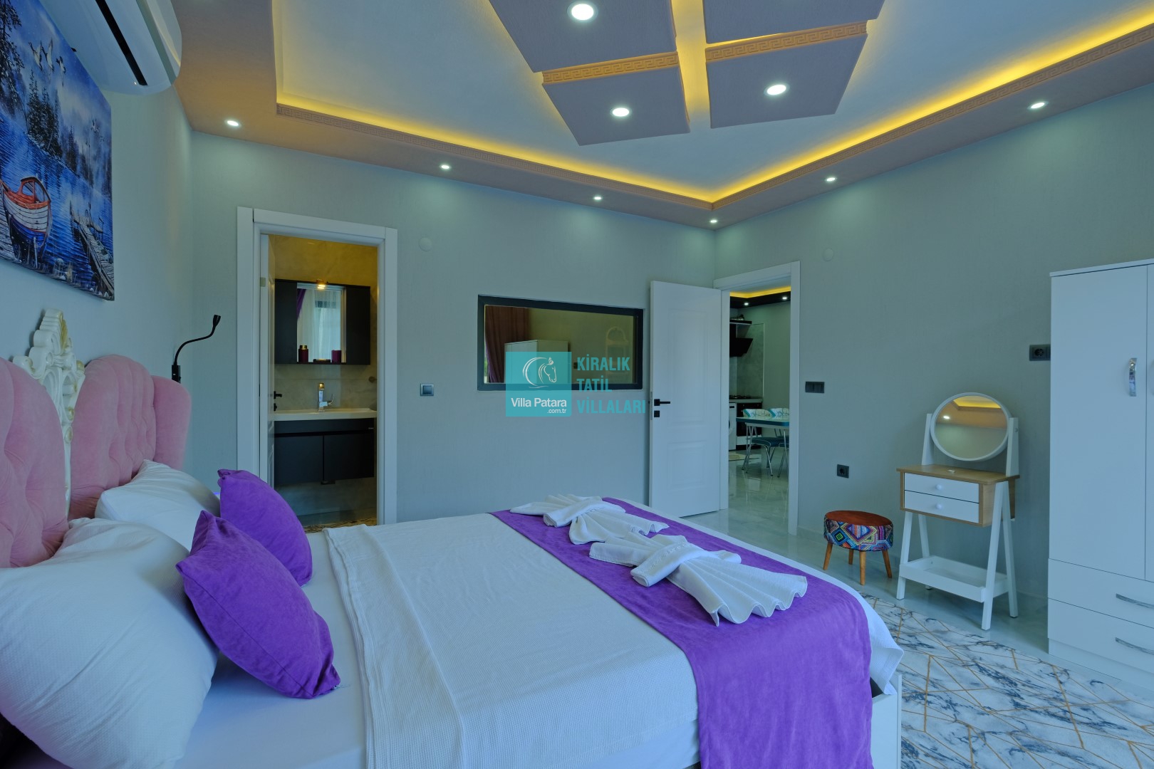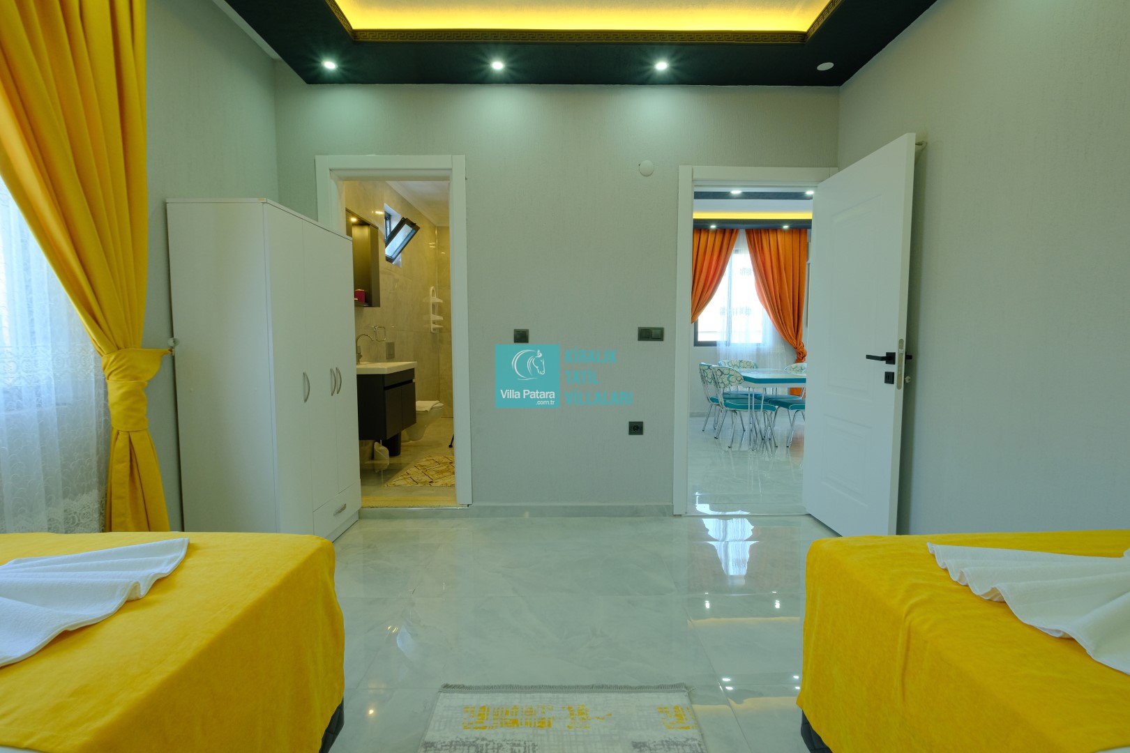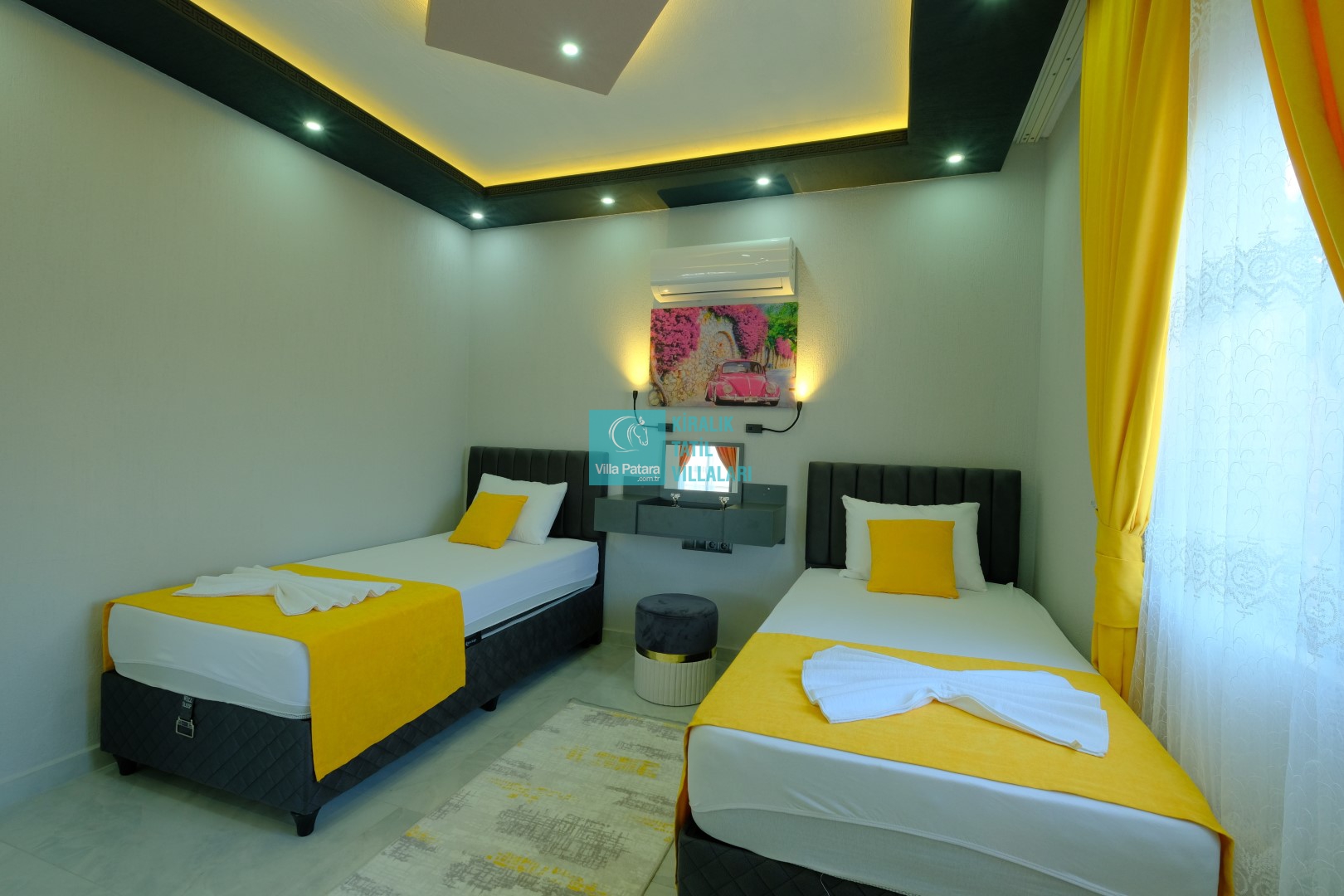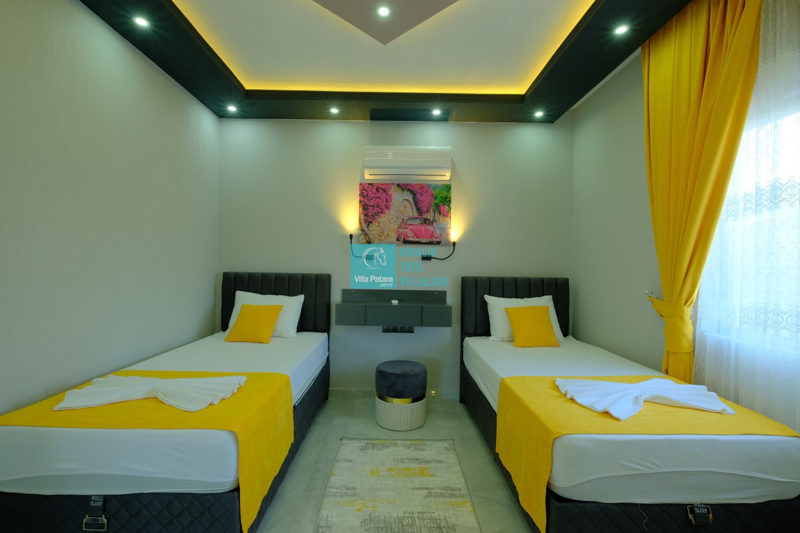 Villa Miray Yeşilköy, Kalkan ile Patara bölgeleri arasında Yeşilköy mevkinde yer alan, 2 yatak odalı 4 kişi kapasiteli, geniş bahçe alanına sahip aktiviteli villamız. Özenli lüks dekoru, düşünülmüş ince dokunuşları ve dizaynı villa tatilinizi keyiflendirecek ve siz değerli misafirlerimizde tatilinizin hiç bitmemesi isteğini uyandıracaktır. Villamız doğa içinde olup havuz ve bahçe kısmı korunaklıdır, havuz keyfini rahatça çıkarmanızı sağlar ve villamızda bulunan korunaklı havuz sayesinde ruhunuzu ve bedeninizi dinlendirme fırsatı bulacaksınız. Modern dizayna sahip olan villamız bulunduğu konum itibari ile ulaşım gerektiren bölgelere yakındır. Geniş bahçe alanına sahipolup masa tenisi, çocuk parkı, salıncak gibi aktivitesi ile çocuklu aileler için ideal villa seçeneklerinden biridir. Ailenizle veya arkadaş gruplarınızla güzel bir tatil geçirmeniz için özenle dizayn edilmiş villamıza siz değerli misafirlerimizi beklemekteyiz.