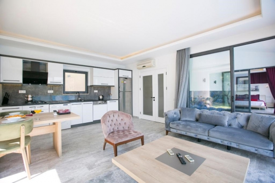 Villamız da havuz terasına açılan bir Amerikan mutfak ve salon 1 adet yatak odası ve 1 adet banyo bulunmaktadır. Son derece keyifli olan villamız , huzurlu bir tatil için siz misafirlerimizi beklemektedir .