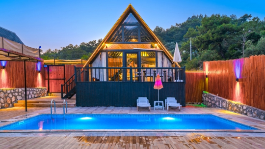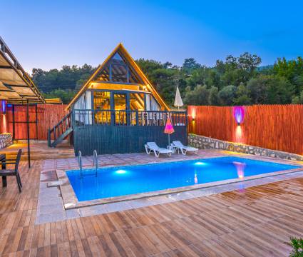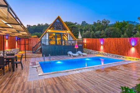 Kalkan İslamlar Mevkiinde, 2 Yatak Odalı, 4 Kişilik, konaklama kapasitesine sahip bungalovumuz ahşap bir mimariye sahiptir doğa içerisinde yer alan bungalov çekirdek aileler ve yeni evli çiftler için gayet uygun bir seçenektir.