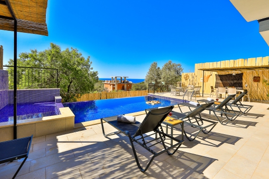 Kaş Gökseki mevkisinde bulunan kiralık balayı villası, sessizliğin, huzurun hakim olduğu bir villada tatil isteyen çiftlerimiz için oldukça uygun bir seçenektir. Muhafazakar ve Deniz Manzaralı kategorisinde yer alan villamız, 3 yatak odası ile 6 kişilik konaklama kapasitesine sahiptir. Havuzu korunaklı ve bahçesi dışarıdan görünmeyen Villa Moren Duo, mahremiyete önem veren çiftlerimiz için huzur dolu bir tatil fırsatı sunuyor. Ayrıca Yatak odasında misafirlerimizin rahatlaması için 2 kişilik jakuzi konforu da sağlamaktadır.