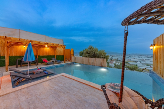 Yatak odasında jakuzi de bulunan villamızın havuz alanı korunaklıdır ve dışarıdan görünmez.